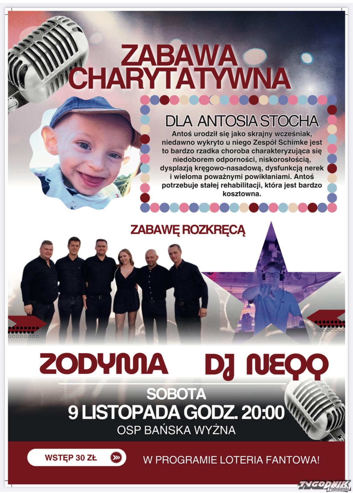 Serdecznie zapraszamy na zabawę charytatywna dla Antosia Stocha 9 listopada, który potrzebuje naszego wspólnego wsparcia. Podczas zabawy, która rozpocznie się o godz. 20 w remizie OSP Bańska Wyżna przewidziana jest loteria fantowa. Jeśli ktoś byłby chętny podarować jakiś voucher będziemy bardzo wdzięczni. Liczymy na waszą obecność. Dobro zawsze wraca