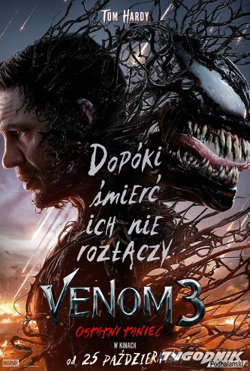 Do kina „Sokół” przy ul. Orkana 2 możecie, również w sobotę 2.11, wybrać się dla odmiany na seans filmu „Venom 3: Ostatni taniec”. To gratka zwłaszcza dla fanów universum Marvela, a zarazem część zamykająca trylogię poświęconą jednej z bodaj najciekawszych w nim postaci - Venomowi. Seans w „Sokole” rozpocznie się o godzinie 16.15.