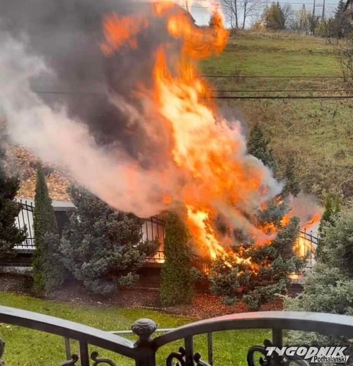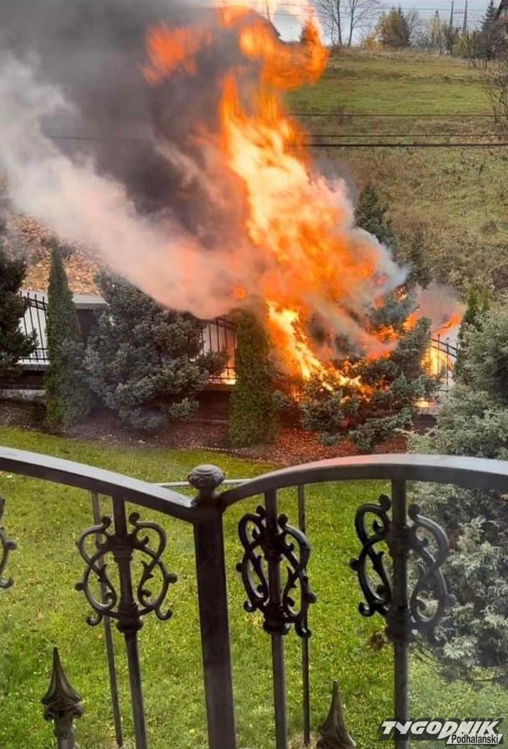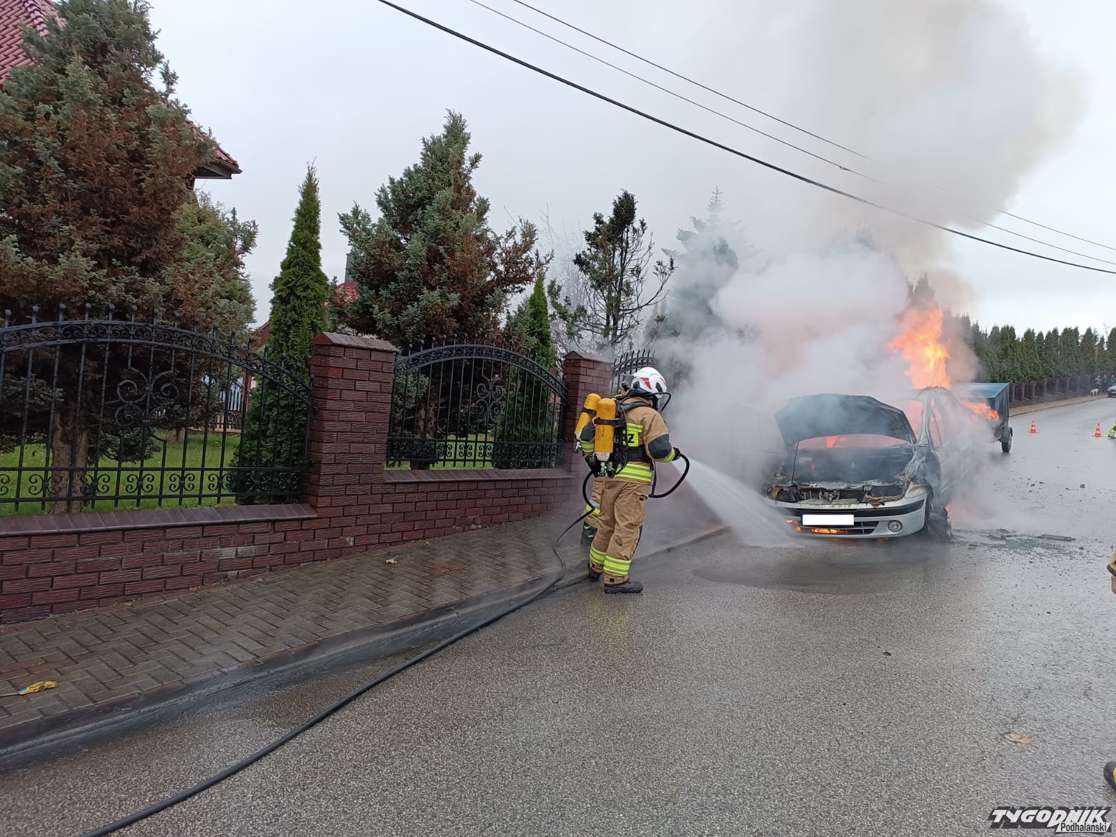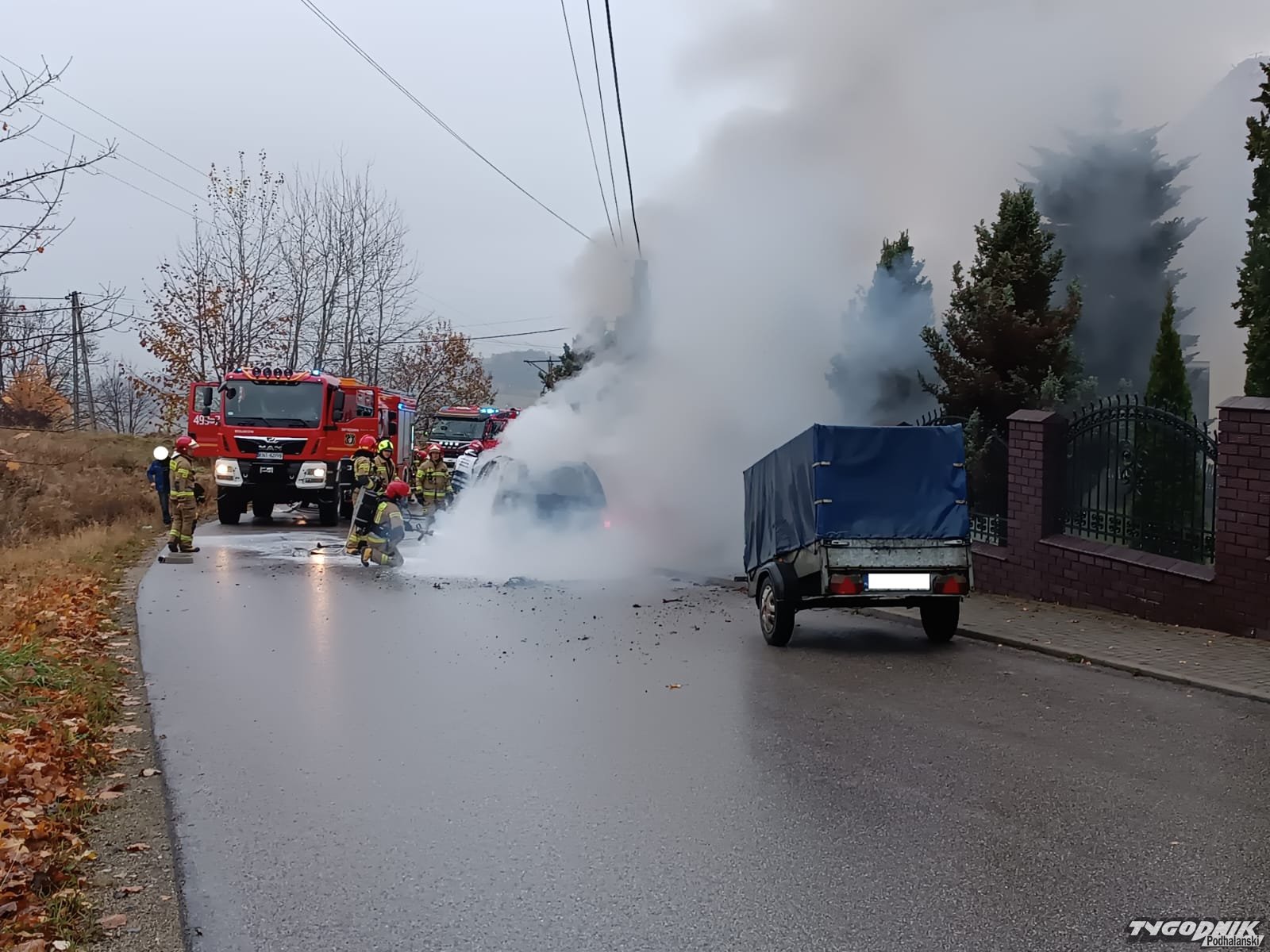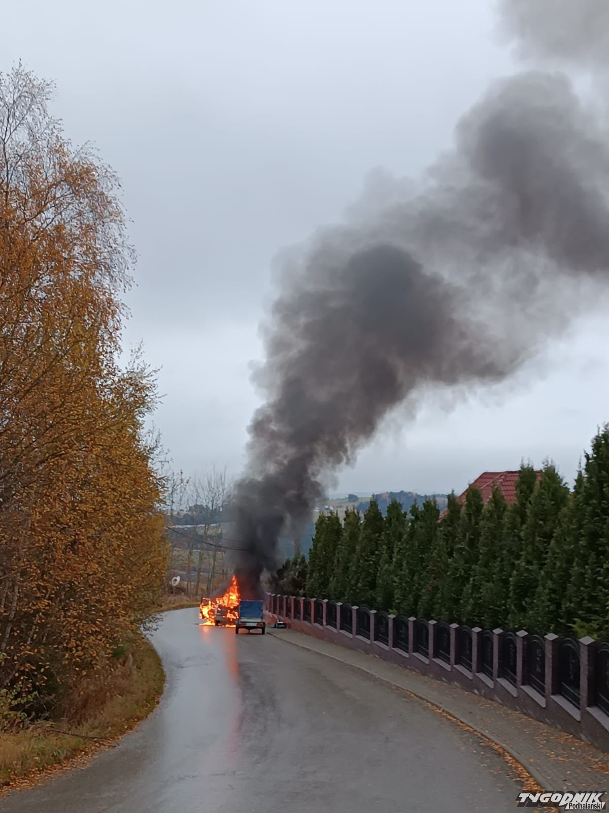 Auto ciągnące przyczepę po prostu stanęło w ogniu.