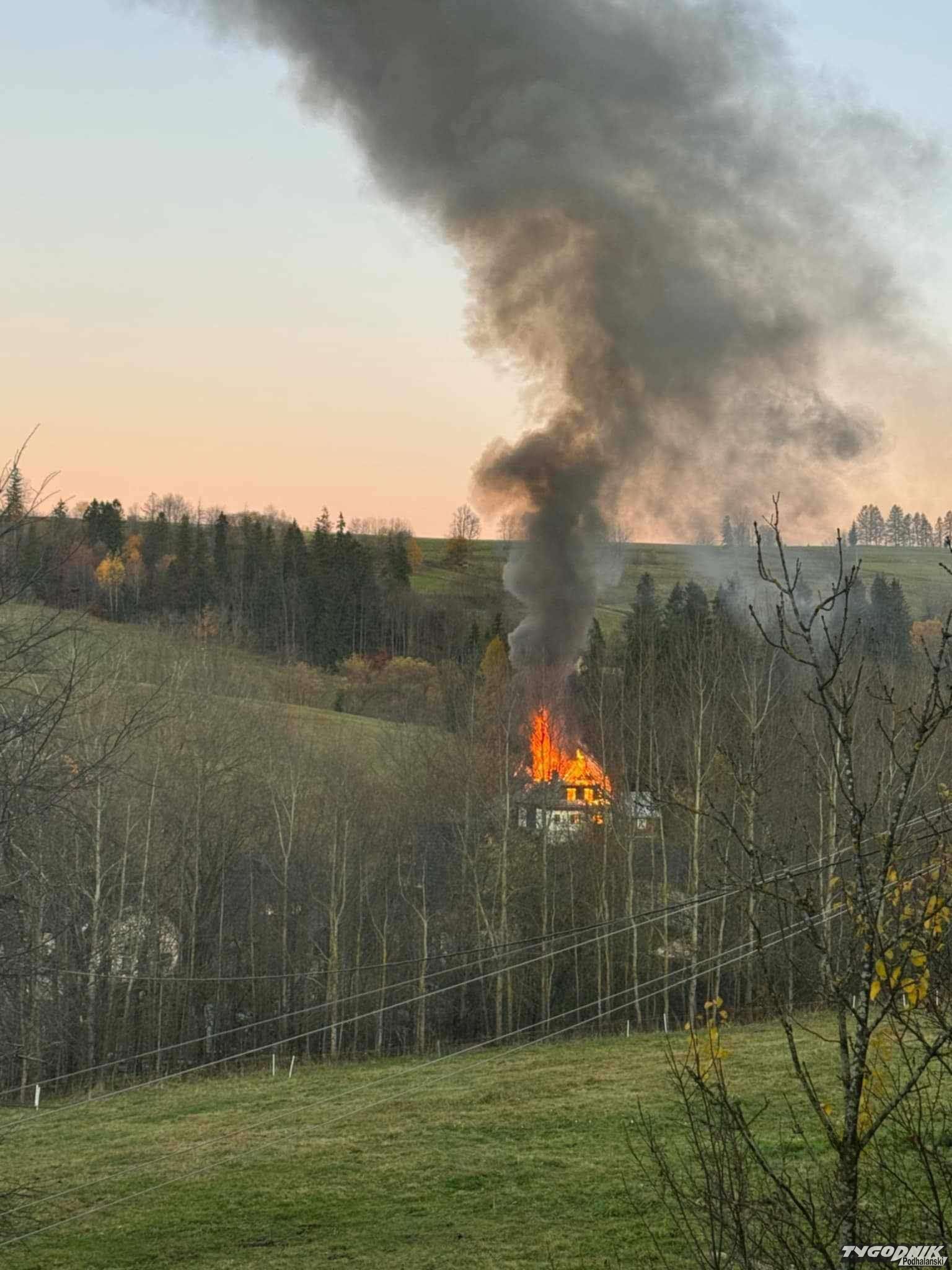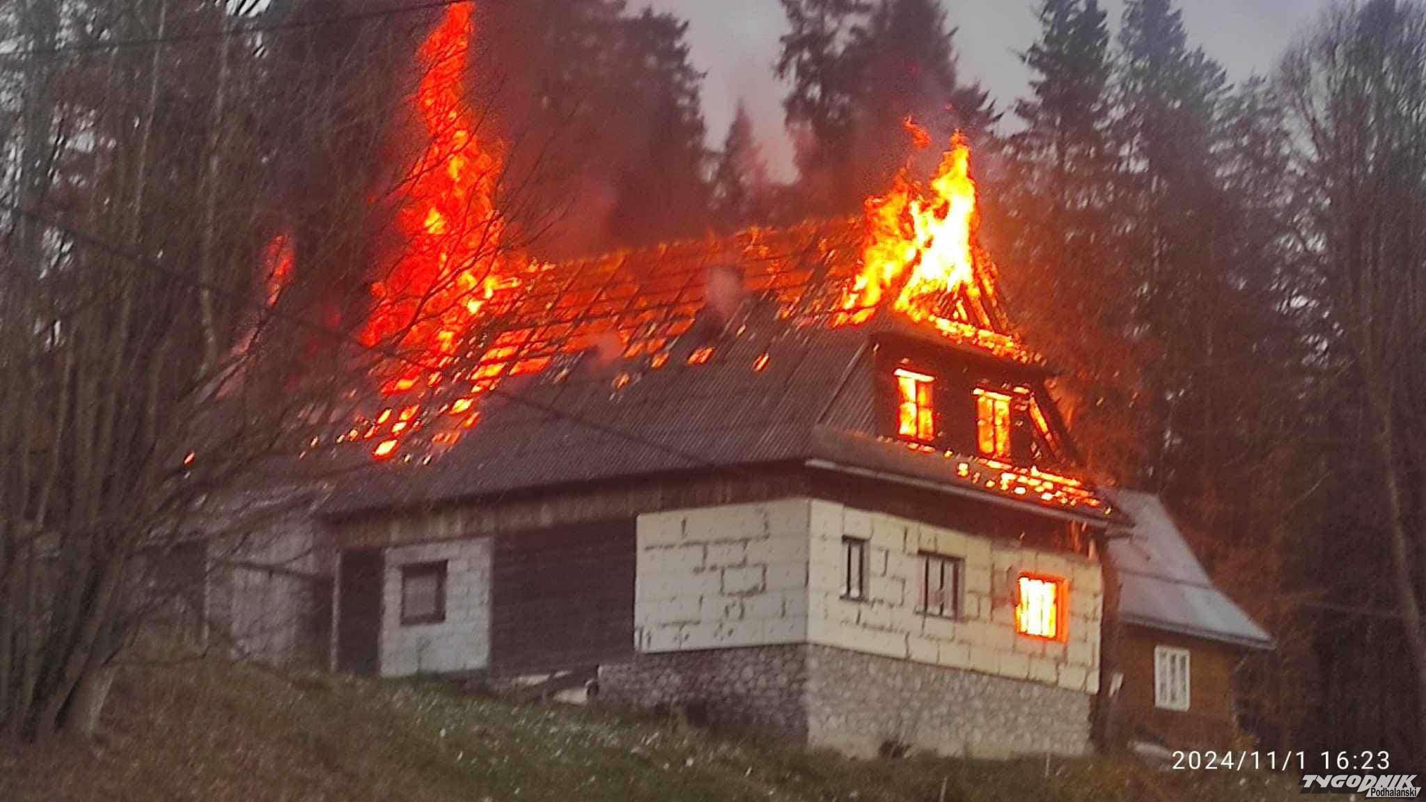 Pali się budynek mieszkalny w Cichem Górnem w gminie Czarny Dunajec.