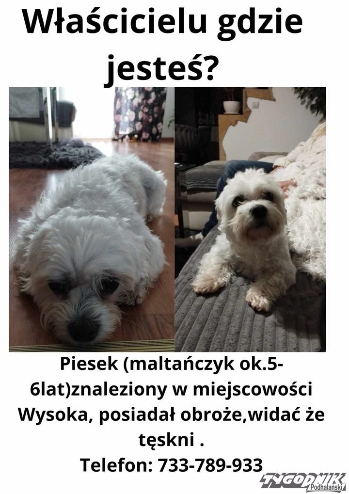 Kilkuletni maltańczyk błąkał się w miejscowości Wysoka.