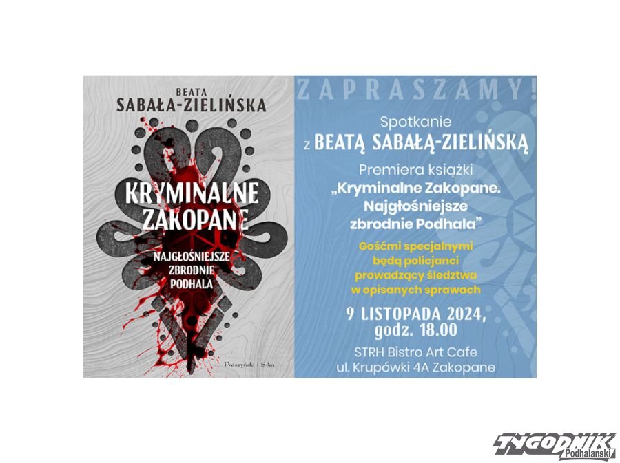 Już w sobotę 9 listopada zapraszamy Was na premierę książki "Kryminalne Zakopane. Najgłośniejsze zbrodnie Podhala" Beaty Sabały-Zielińskiej.