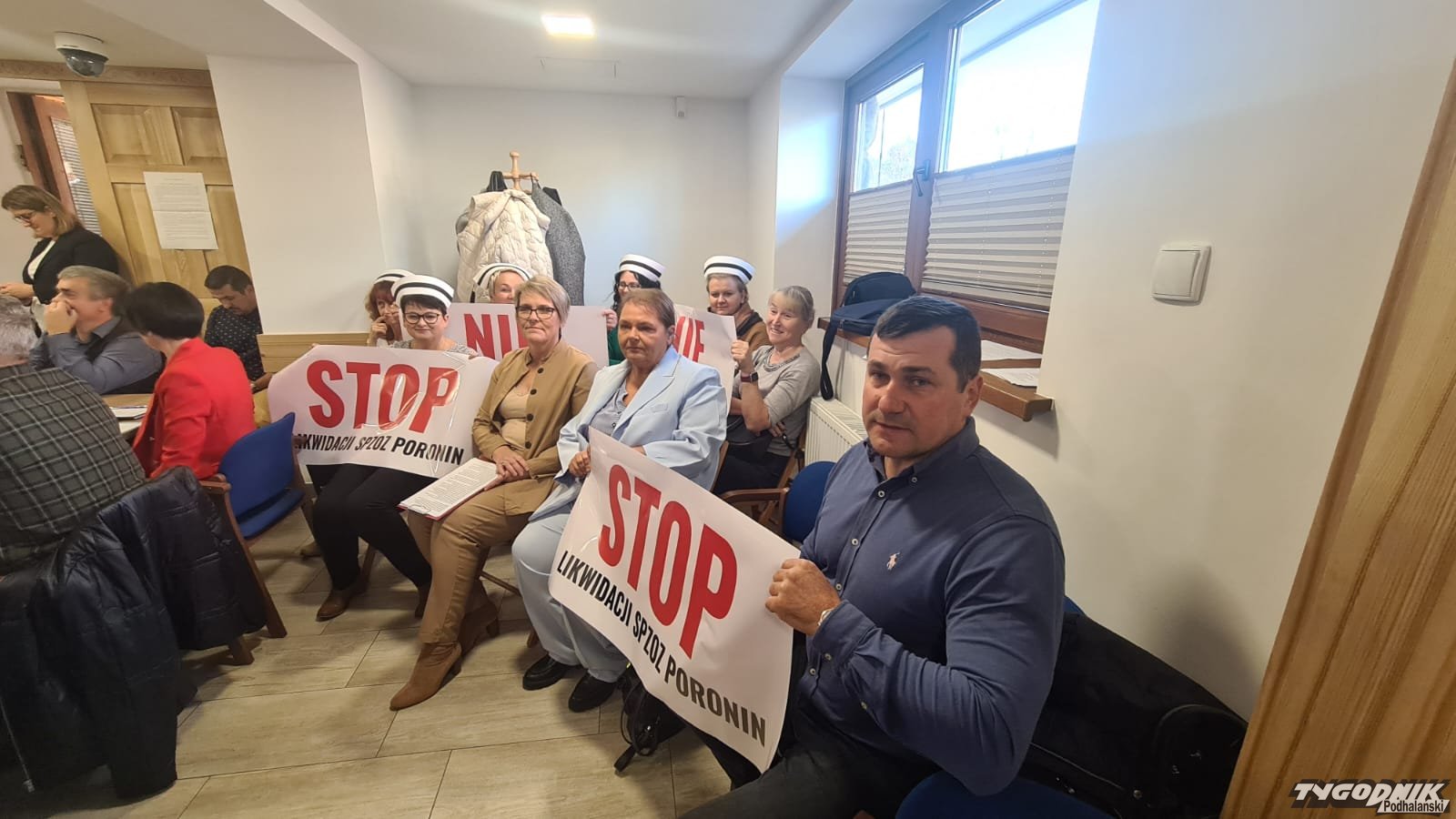Wójt Anita Żegleń na miejscu ośrodka w Poroninie chce wybudować żłobek. Pacjenci maja trafić do prywatnej przychodni, która również ma podpisany kontrakt z NFZ. Przeciwko likwidacji protestuje personel i część mieszkańców. Na zebraniu sołeckim w Zębie przeciwko likwidacji byli prawie wszyscy obecniNa rozpoczętej o godz. 9 sesji są pracownicy ośrodka zdrowia, mieszkańcy, którzy mają transparenty z napisem: "Stop likwidacji SP ZOZ Poronin".
