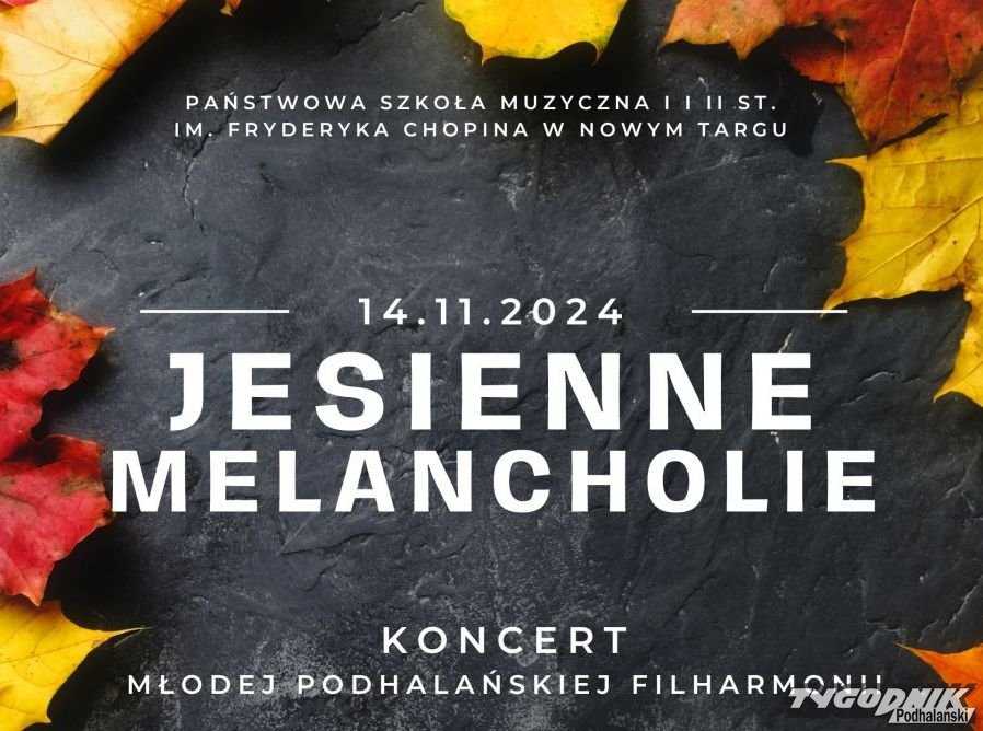 Państwowa Szkoła Muzyczna I i II st. im. Fryderyka Chopina w Nowym Targu zaprasza na koncert z cyklu Młoda Podhalańska Filharmonia - "Jesiennie melancholie".