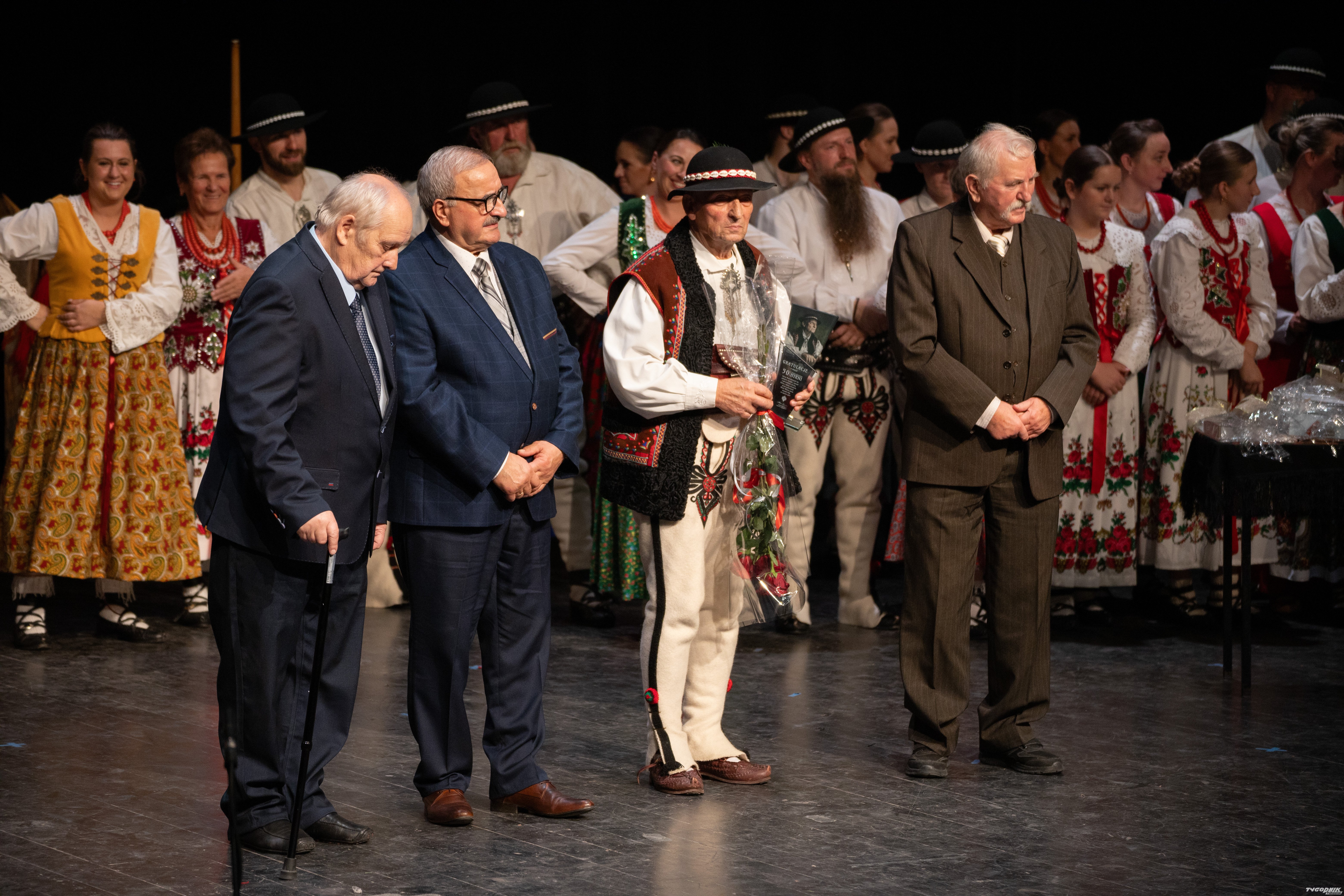 Uroczystości w sali widowiskowej MCK w niedzielę były okazją nie tylko występu kilku pokoleń muzykantów i tancerzy, ale także do wspomnień. Zasłużeni członkowie zespołu zostali uhonorowani przez prowadzących oraz burmistrza Grzegorza Watychę. Impreza zakończyła się słodkim poczęstunkiem.