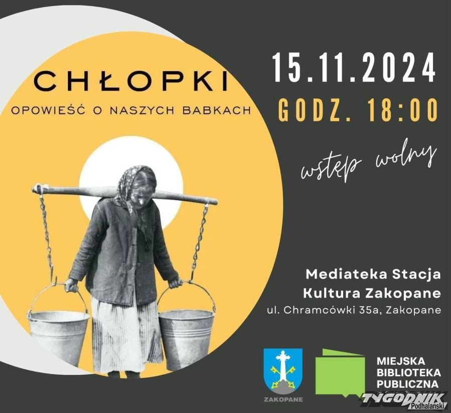 Miasto Zakopane oraz Miejska Biblioteka Publiczna im. Stefana Żeromskiego w Zakopanem zapraszają na spotkanie z Joanną Kuciel-Frydryszak, autorką jednej z najbardziej popularnych książek ostatnich miesięcy "Chłopki. Opowieść o naszych babkach".