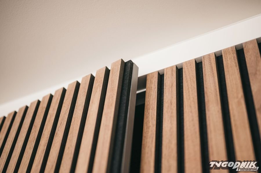 Poprawa komfortu akustycznego: Drewniane panele akustyczne minimalizują zjawisko odbijania dźwięku, co sprawia, że przestrzeń staje się cichsza i bardziej przytulna. W pomieszczeniach, gdzie występuje duża ilość dźwięków odbijających się od powierzchni, może pojawić się efekt "echa", a to wpływa negatywnie na komfort akustyczny. Dzięki panelom dźwięk staje się bardziej wyraźny - jest to szczególnie istotne w miejscach, gdzie dużo rozmawiamy lub oglądamy telewizję.