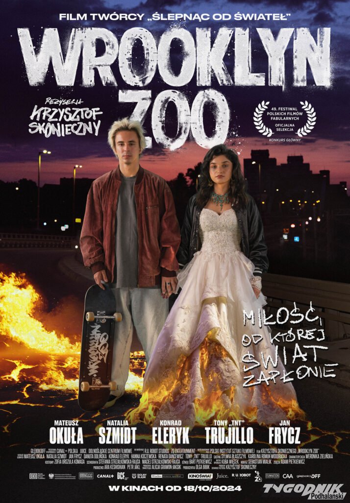 Wreszcie w kinie „Miejsce – sali studyjnej kina „Sokół” przy ul. Orkana 2, obejrzycie polski film „Wrooklyn Zoo” w reżyserii Krzysztofa Skoniecznego. Opis dystrybutora filmu: „Prawdziwa miłość wymaga poświęceń, a droga do jej spełnienia nie zawsze jest łatwa. W mieście, w którym ulicami trzęsą członkowie brutalnego gangu spotkają się dwa odmienne światy. Świat Kosy – kończącego liceum charyzmatycznego skejta, dla którego całą rodzinę stanowią kumple oraz kochający go nad życie dziadek. I świat Zory – obdarzonej cudownym głosem magnetycznej romskiej dziewczyny, która czuje się ograniczana przez rodzinne tradycje i którą pociąga inne życie. Gdy ta dwójka młodych ludzi się spotka – wszystko zapłonie. Ich serca. Ich miasto. Ich życia. A wraz z nimi rzeczywistość dookoła”. Seans w kinie „Miejsce” w sobotę 16.11 o godzinie 16.