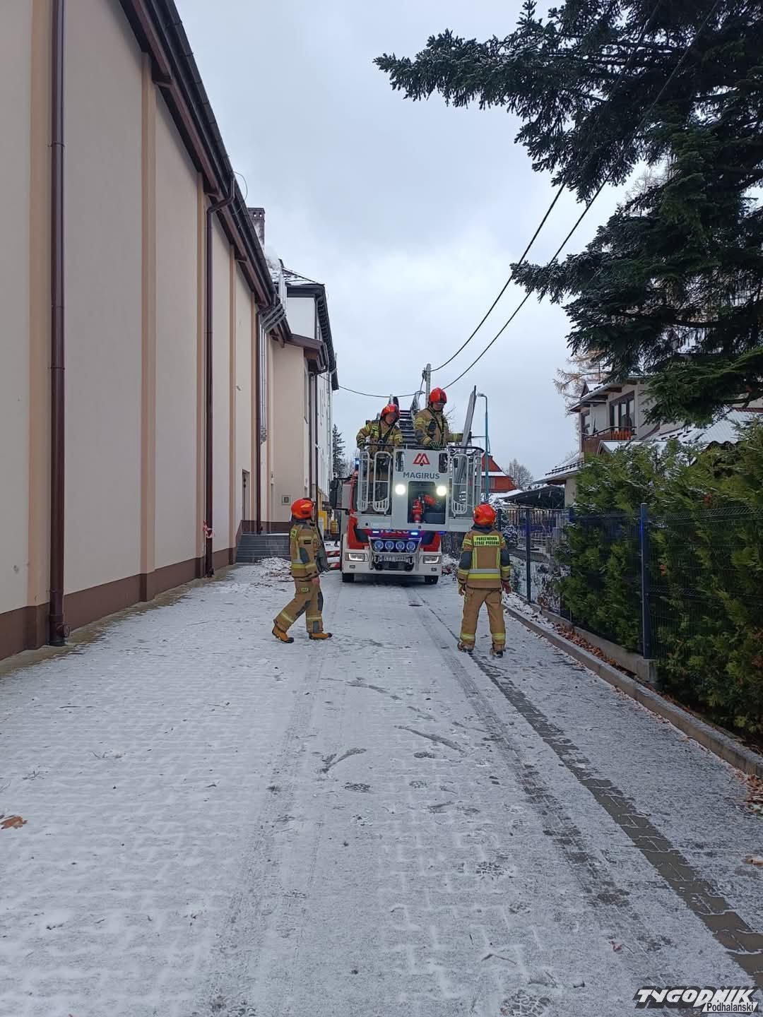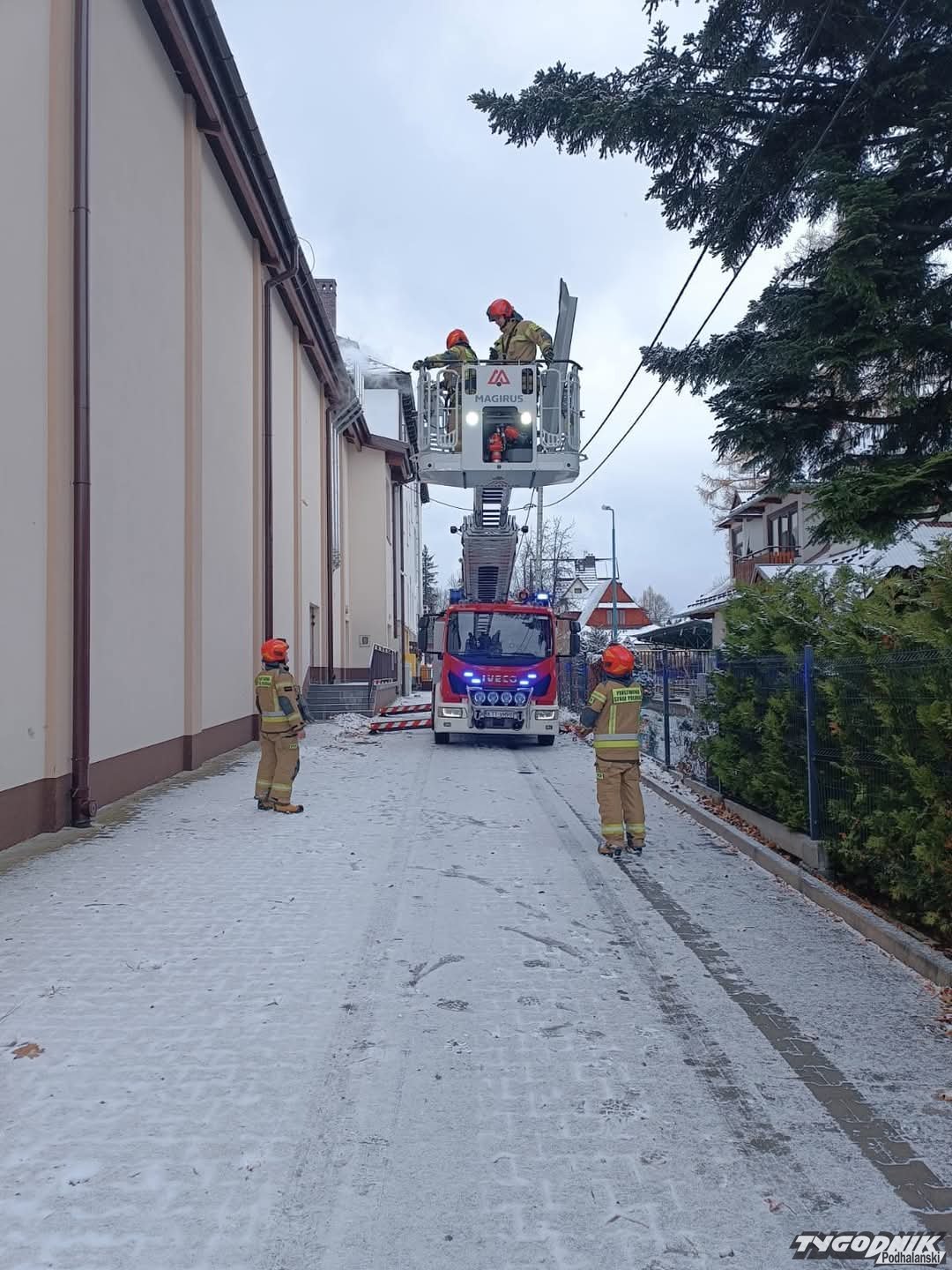 Około południa zakopiańscy strażacy pojechali do Szkoły Mistrzostwa Sportowego w Zakopanem.