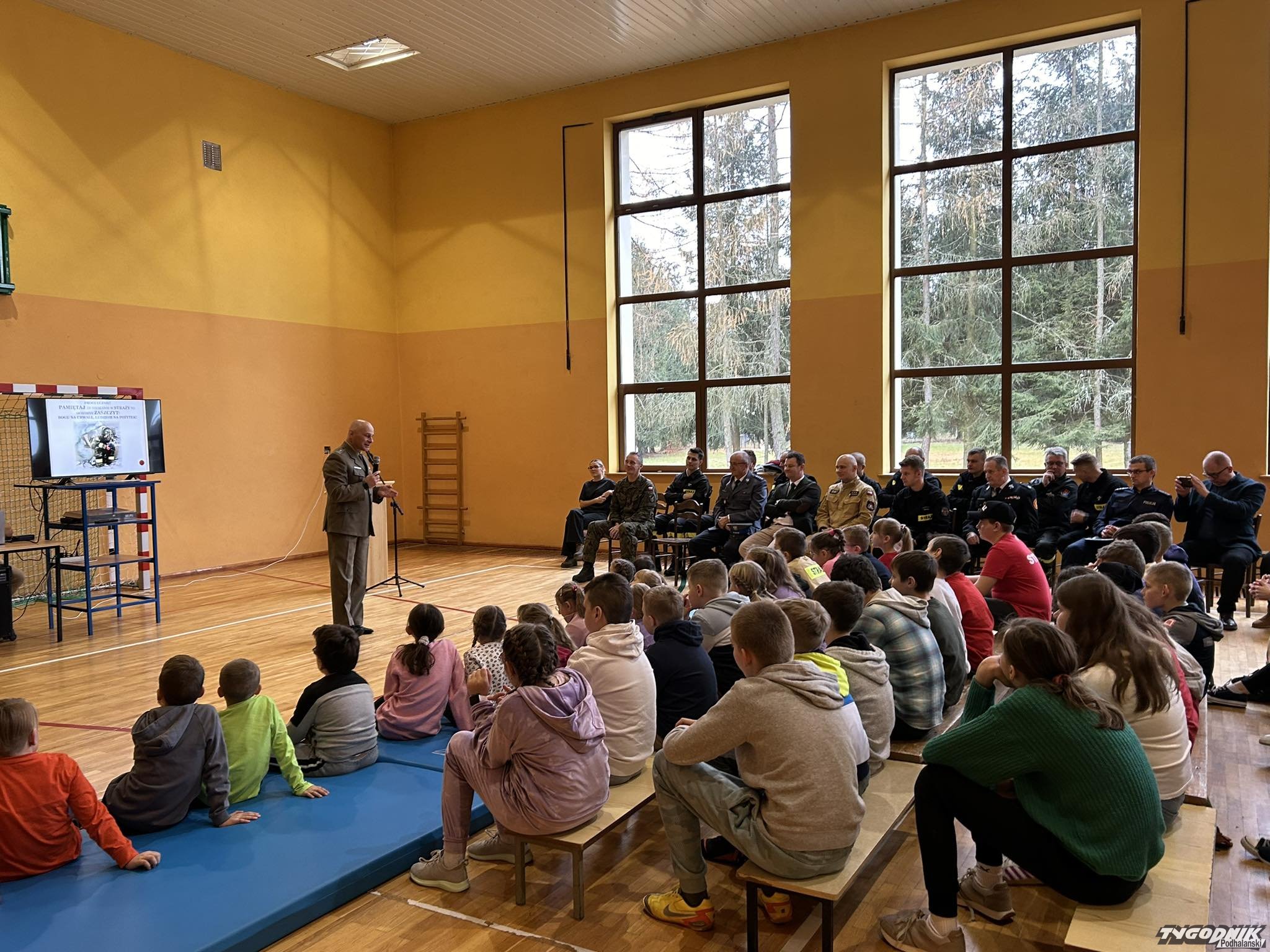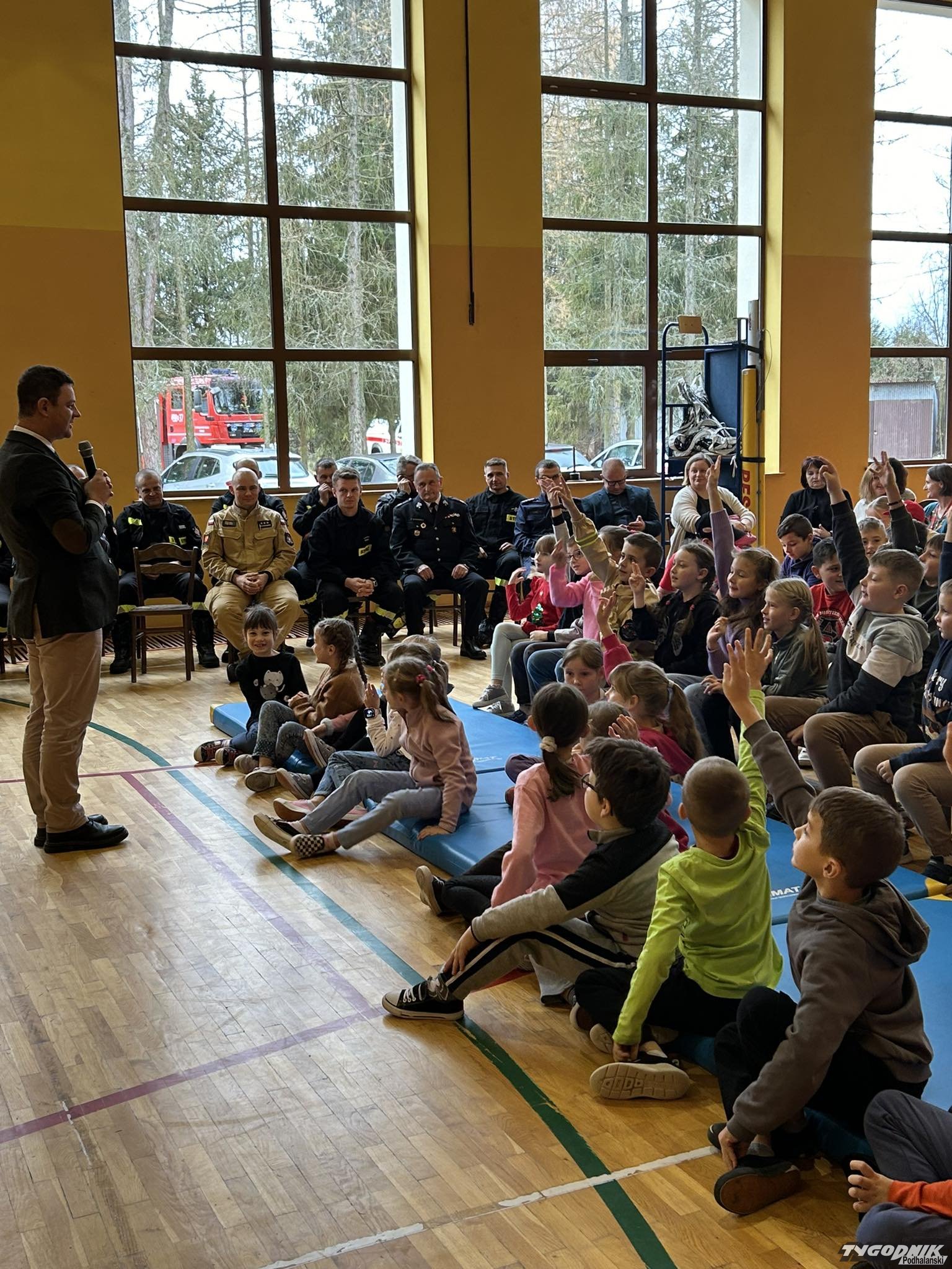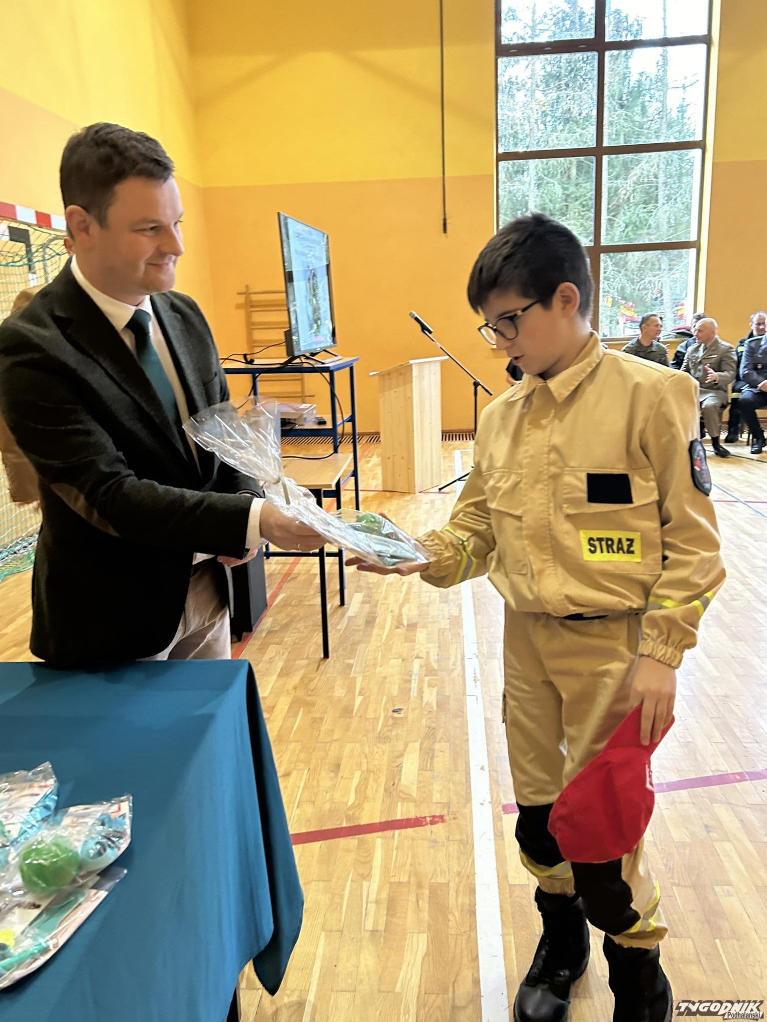 Dotarli także: prezes Zarządu Gminnego ZOSP RP Jan Styrczula, psycholog Kinga Stafira, strażacy ratownicy z OSP Podczerwone, Odrowąż i Pieniążkowice, dyrektor Szkoły Podstawowej w Odrowążu- Iwona Florczyk, dyrektor Szkoły Podstawowej w Pieniążkowicach- Grażyna Komperda oraz dyrektor Monika Czapla wraz z gronem pedagogicznym i uczniami Szkoły Podstawowej w Podczerwonem.
