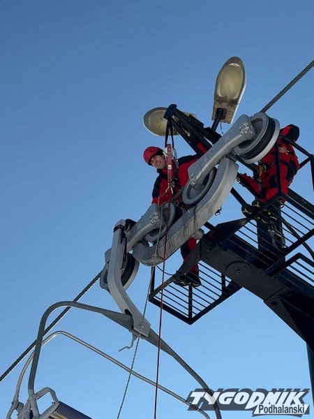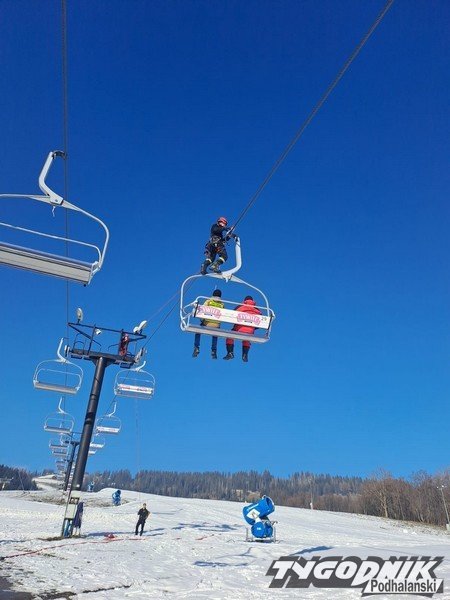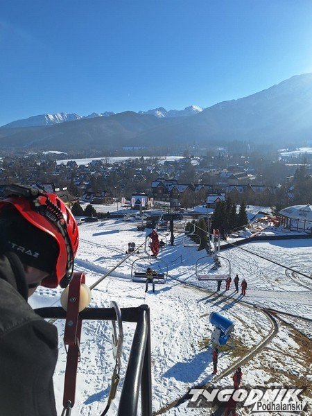 Poniedziałek na Polanie Szymoszkowej upłynął pod znakiem ewakuacji z unieruchomionego wyciągu. Na szczęście nie trzeba było ściągać z wysokości narciarzy. Miejsca na krzesełkach zajmowali strażacy. A to za sprawą wewnętrznych warsztatów wysokościowych, w jakich 2 grudnia wzięli udział strażacy Komendy Powiatowej Państwowej Straży Pożarnej w Zakopanem.