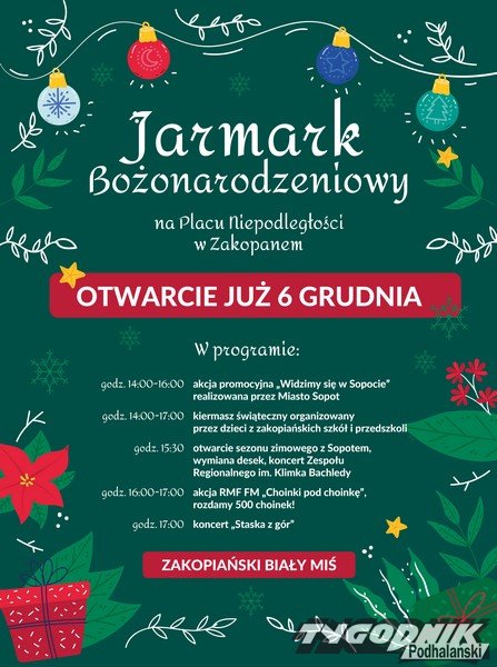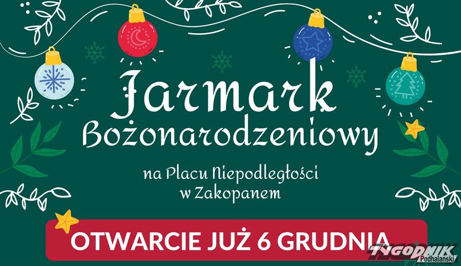 Szóstego grudnia na Placu Niepodległości w Zakopanem rusza Jarmark Bożonarodzeniowy, moc atrakcji czeka na odwiedzających.