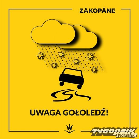 Urząd Gminy Kościelisko i Urząd Miasta Zakopane alarmują na swych stronach internetowych i w mediach społecznościowych o zamarzających drogach i chodnikach. Dziś od godziny 18 w wielu miejscach pojawić może się gołoledź. Prawdopodobieństwo wystąpienia oblodzenia wynosi 80 procent. Po opadach mokrego śniegu niska temperatura w nocy sprawi, że chodniki i ulice pokryć może cienka warstwa lodu. Termometry przy gruncie pokazać mogą minus sześć stopni Celsjusza. Gołoledź utrzymywać się będzie do jutrzejszego poranka. Obie gminy apelują, by na bieżąco śledzić alerty pogodowe Instytutu Meteorologii i Gospodarki Wodnej.