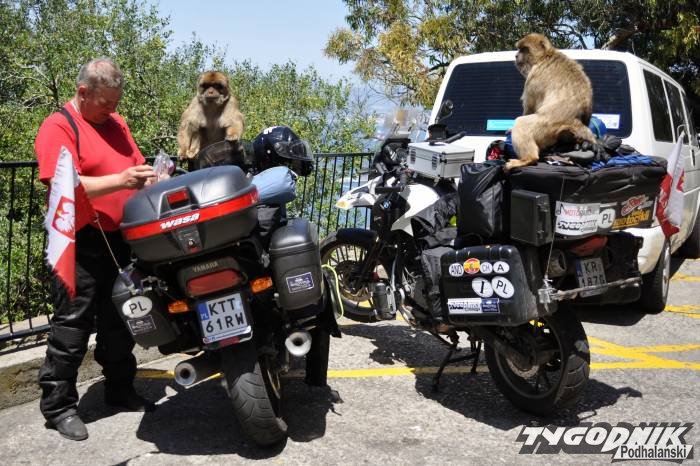 Małpy na Gibraltarze to niesamowite cwaniaki. Widziały, gdzie schowane mamy jedzenie, wskoczyły na motocykle i zaczęły dobierać się to toreb. Zdarza się, że ze złości kradną nierozważnym turystom kluczyki, aparaty fotograficzne czy komórki. Nam ukradły tylko mocno miętowe menthosy, ale chyba im zaFot. bardzo nie smakowały.