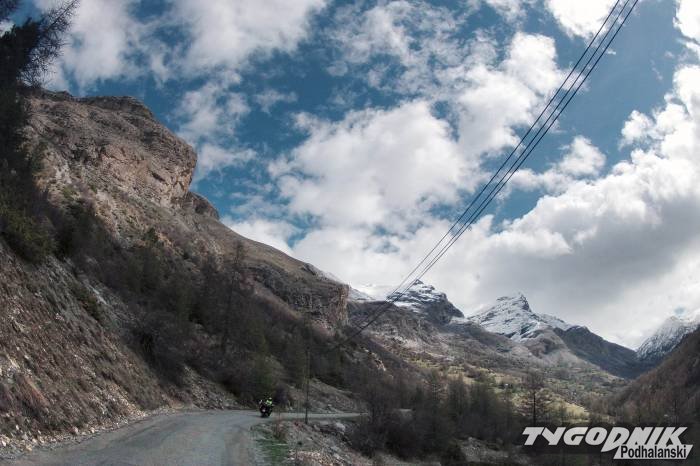 Route des Grandes Alpes to droga poprowadzona największymi francuskimi przełęczami, które sięgają ponad 2000 m npm. Cała trasa jest bardzo malownicza, ale strasznie wąska (momentami niespełna 3m) i w maju w dużej części pokryta śniegiem.Fot. Adrian Gładecki