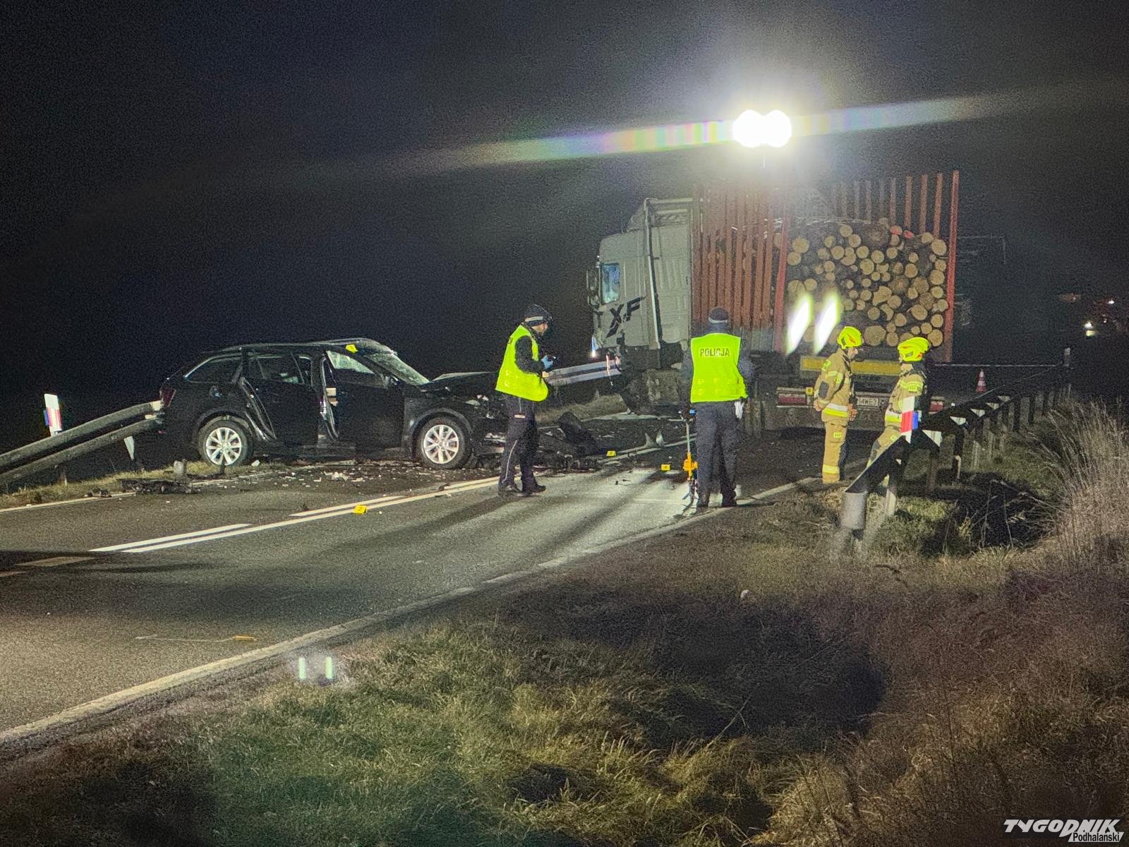 Do zderzenia doszło na drodze wojewódzkiej z Jabłonki w stronę Piekielnika. Jedna osoba została ranna. Samochód osobowy zderzył się z ciężarówką przewożącą drewno. Karetka pogotowia zabrała ją do szpitala. Droga jest całkowicie zablokowana. Z obu stron tworzą się bardzo duże korki.