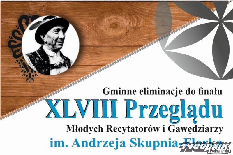 Eliminacje gminne do finału 48. Przeglądu Młodych Recytatorów i Gawędziarzy im. Andrzeja Skupnia-Florka odbędą się w czwartek 12.12 w sali widowiskowej Centrum Kultury i Promocji Gminy Czarny Dunajec (przy ul. J. Piłsudskiego 2A). Początek - godzina 9.