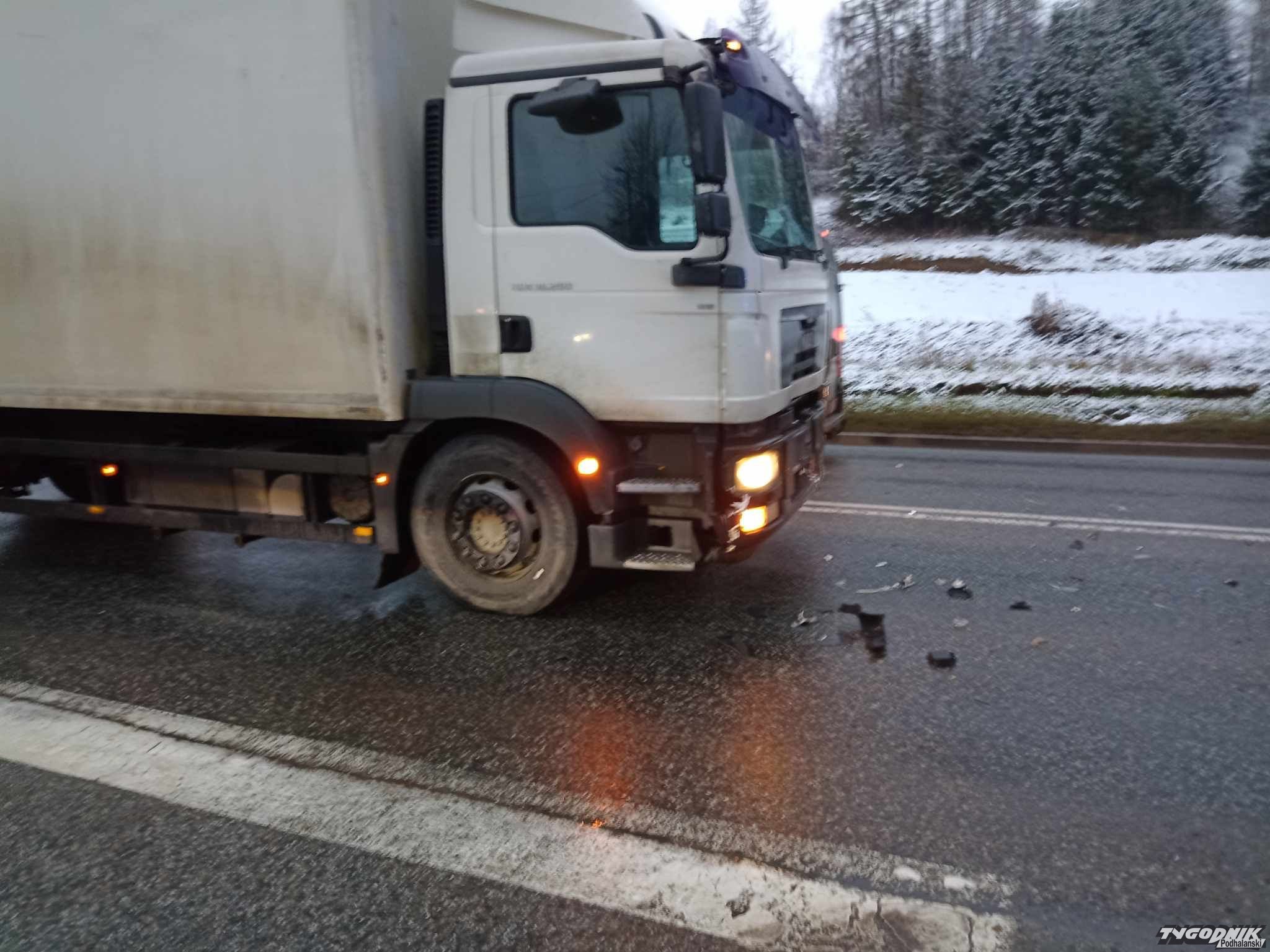 Zderzenie samochodu osobowego z ciężarowym, ruch wahadłowy