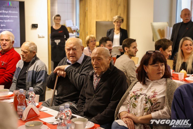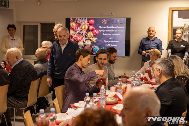 Nie zabrakło również tradycyjnych wigilijnych potraw, które dodatkowo podkreślały uroczysty charakter spotkania. Goście mieli okazję nie tylko posmakować regionalnych przysmaków, ale i poczuć rodzinną atmosferę, jaka towarzyszyła całemu wydarzeniu.