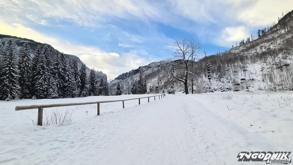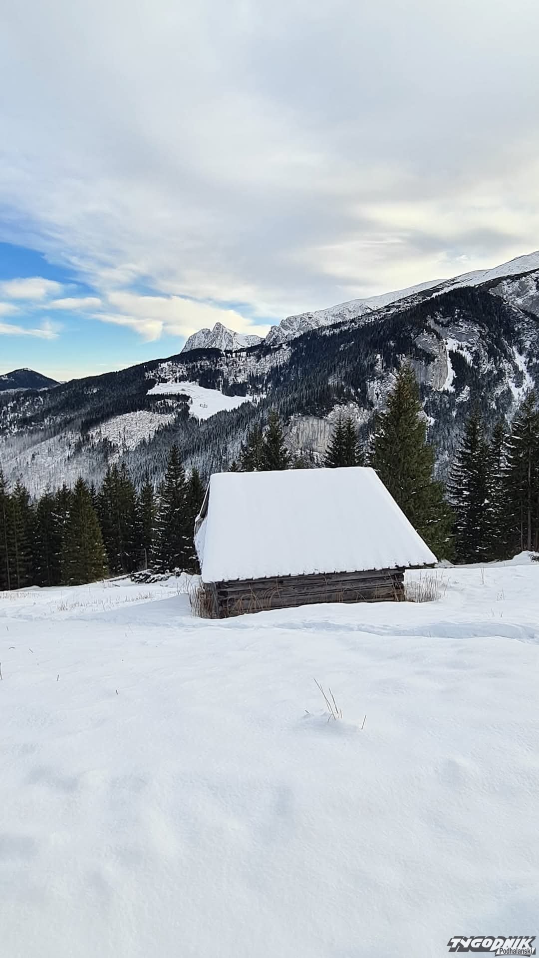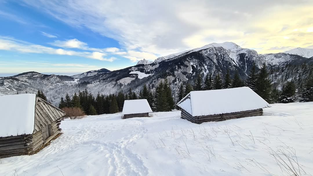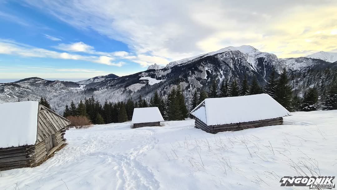 W Zakopanem dziś rano - 11, w Poroninie -12, a nad Morskim Okiem, w Chochołowskiej, na Hali Stoły delikatnie plusowa temperatura, a więc inwersja. My wygraliśmy się właśnie na Halę Stoły w Kościeliskiej skąd roztacza się piękny widok na Czerwone Wierchy i Giewont. Polanie uroku dodają szałasy, a słońce nawet zimą wschodzi dość wcześnie. Przed nami pogorszenie pogody. W niedzielę wiatr, opady śniegu, a w poniedziałek na Podhalu będzie padać deszcz, a w Tatrach śnieg.