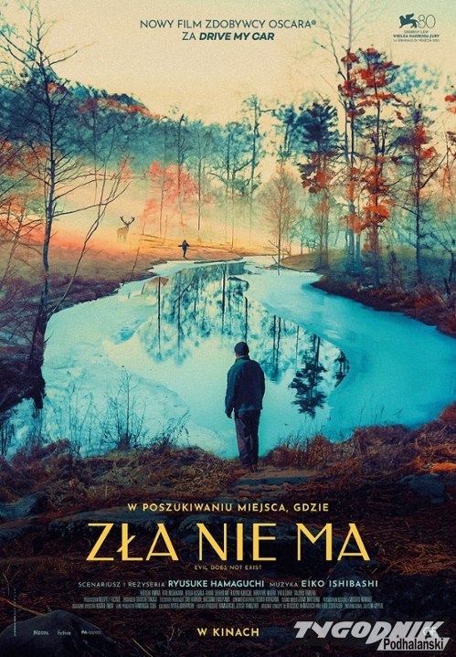 Kino „Miejsce” (sala studyjna kina „Sokół”) przy ul. Orkana 2 zaprasza z kolei na seans japońskiego filmu „Zła nie ma” w reżyserii Ryusuke Hamaguchi, o którym Screen International napisał, że to tajemnicza eko-baśń o uzdrawiającej mocy natury. To opowieść o Takumim, który mieszka w lesie niedaleko Tokio i opiekuje się córką Haną. Codzienny rytm społeczności zaburza przyjazd przedstawicieli korporacji, którzy na polanie odwiedzanej przez jelenie chcą zrobić nowoczesny przyczółek glampingowy. Natrafiają jednak na opór lokalnej społeczności. Czym to się skończy dowiecie się oglądając film w sobotę 21.12 o godzinie 16.20