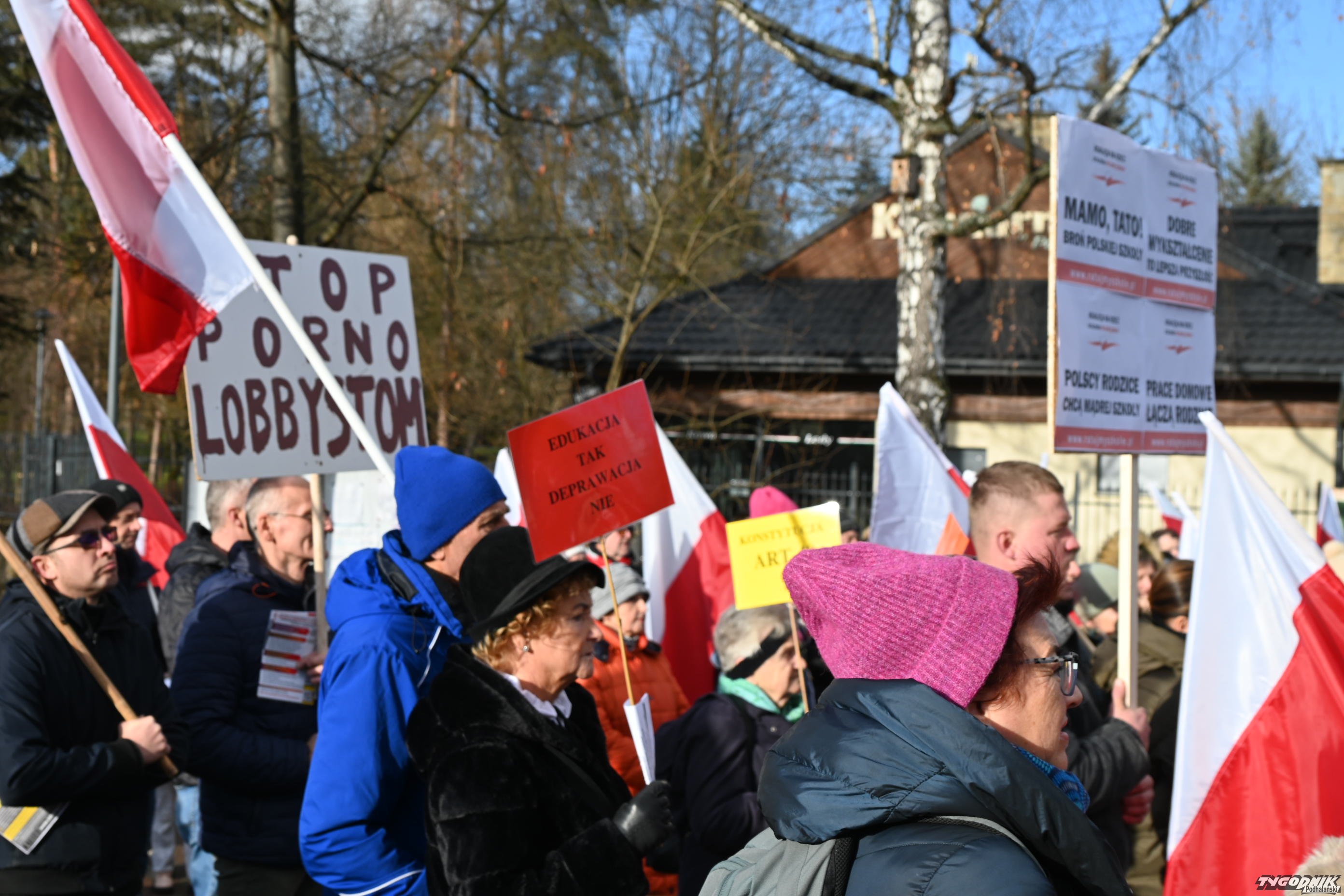 "Precz od szkoły wy lewackie matoły", "Prace domowe łączą rodzinę" - to tylko niektóre transparenty, które trzymali w dłoniach uczestnicy manifestacji, która była wymierzona przeciwko planowanej edukacji zdrowotnej. Nowy przedmiot ma pojawić się w placówkach od 1 września 2025 r.