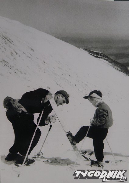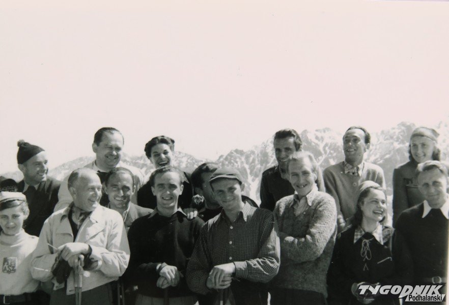 Ale te z Bobkowskim zdjęcia najważniejsze. Zdzisław Motyka, przedwojenny zawodnik, zjazdowiec Ciaptak, Tadziu Schiele, pilot RAF-u z rodziny, która prowadziła wytwórnię nart. Daniel Krzeptowski, słynny zawodnik. Pośrodku stoi Aleksander Bobkowski, prezes PZN, wiceprezes FIS-u, zięć prezydenta Ignacego Mościckiego.