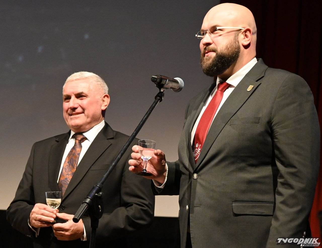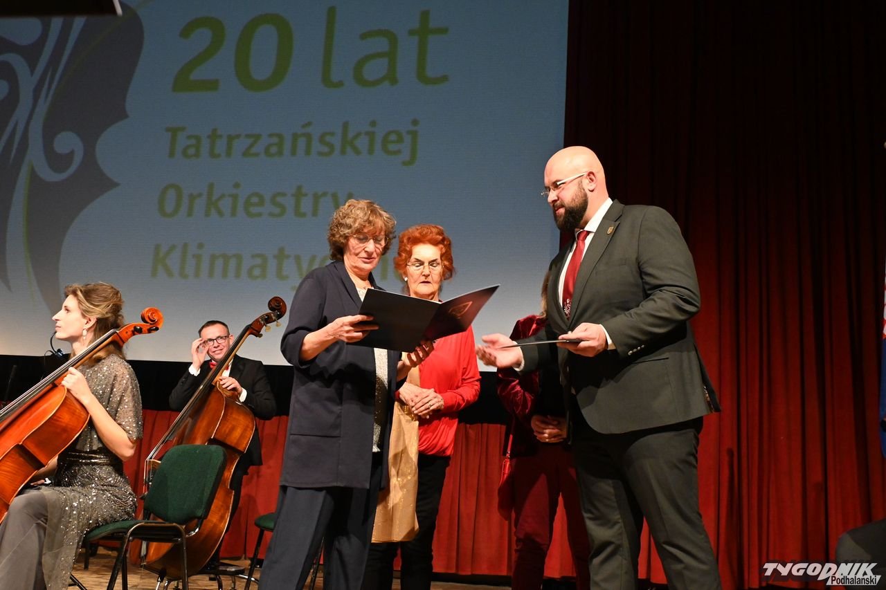 Szczelnie wypełniona sala zakopiańskiego kina Sokół w wieczór sylwestrowy 31 grudnia stanowiła doskonałe potwierdzenie, że publiczność darzy niezwykłą sympatią artystów z Tatrzańskiej Orkiestry Klimatycznej na czele z jej dyrygentem Agnieszką Kreiner. Wszak to ona jest sprawczynią tego niezwykłego muzycznego przedsięwzięcia. I czyni to ponad podziałami wszelkimi. To dla niej na scenie obok siebie stanęli dawny burmistrz Piotr Bąk i obecny Łukasz Filipowicz. Nie zabrakło bowiem tradycyjnego toastu włodarza Zakopanego i życzeń noworocznych. Wcześniej licznych gości przywitała Joanna Staszak i Paweł Para, przedstawiciel Towarzystwa Gimnastycznego "Sokół". Potem na chwilę oddała batutę pani wiceburmistrz Iwonie Grzebyk-Dulak i przewodniczącemu Rady Miasta Grzegorzowi Jóźkiewiczowi.
