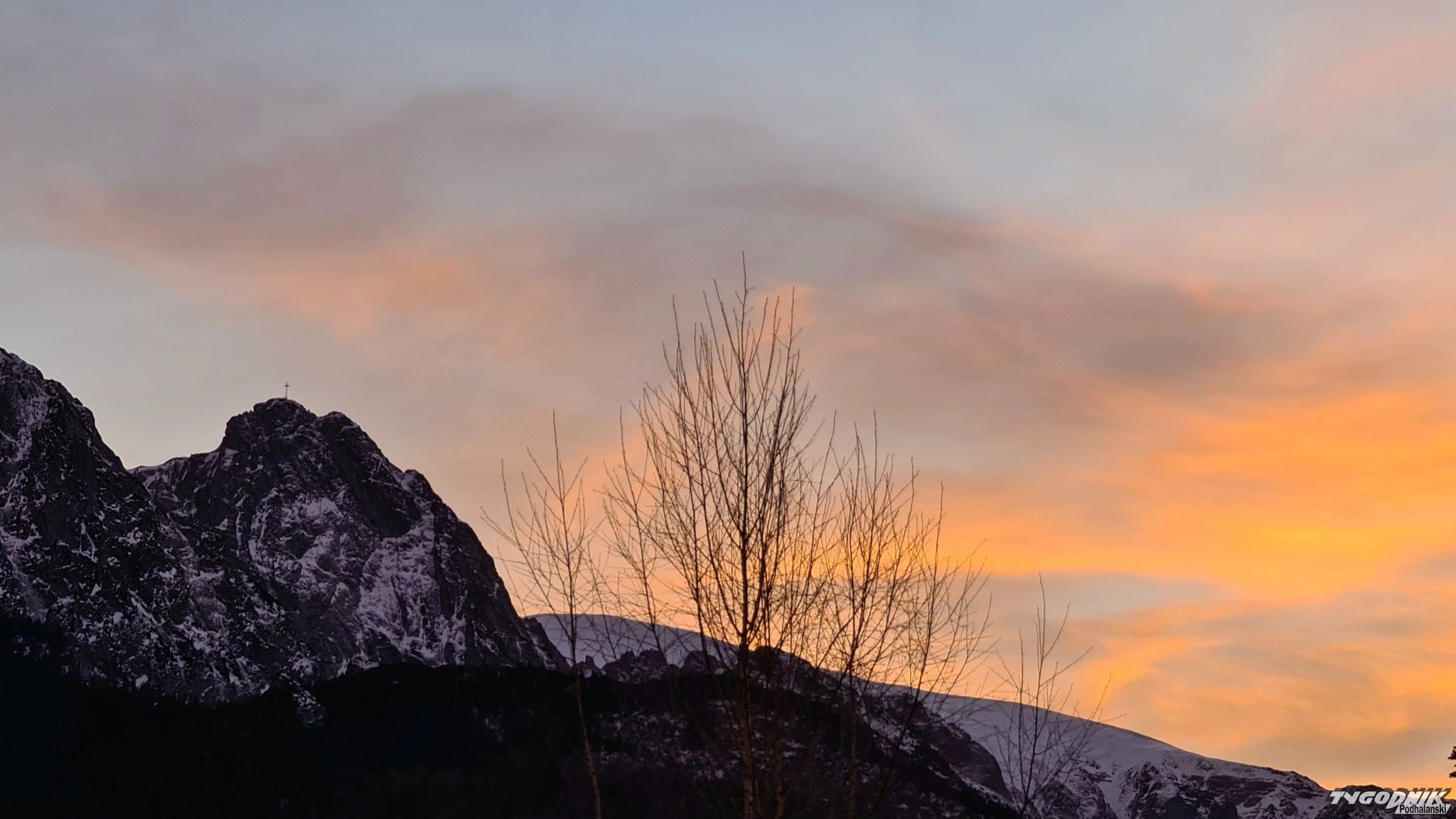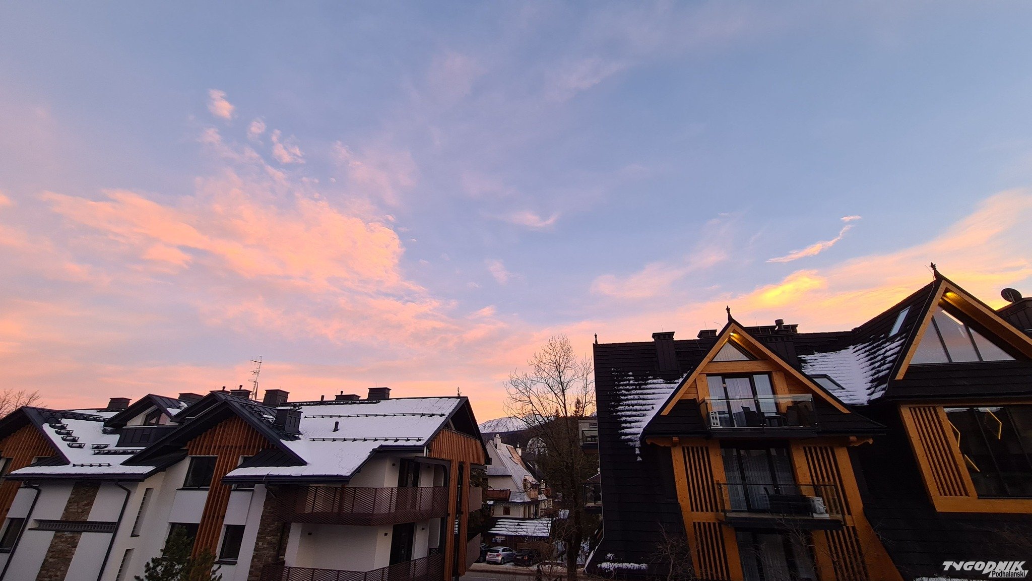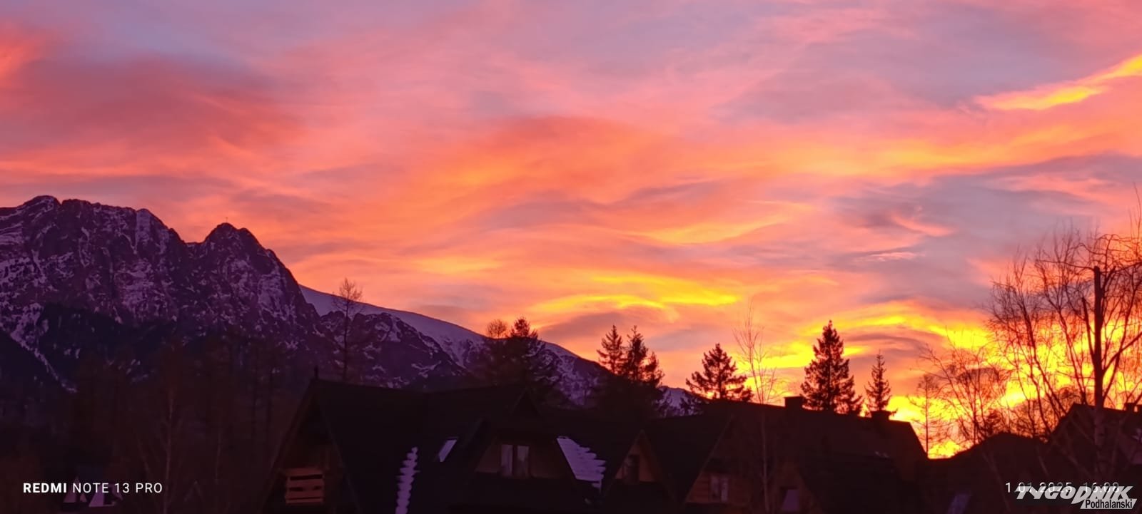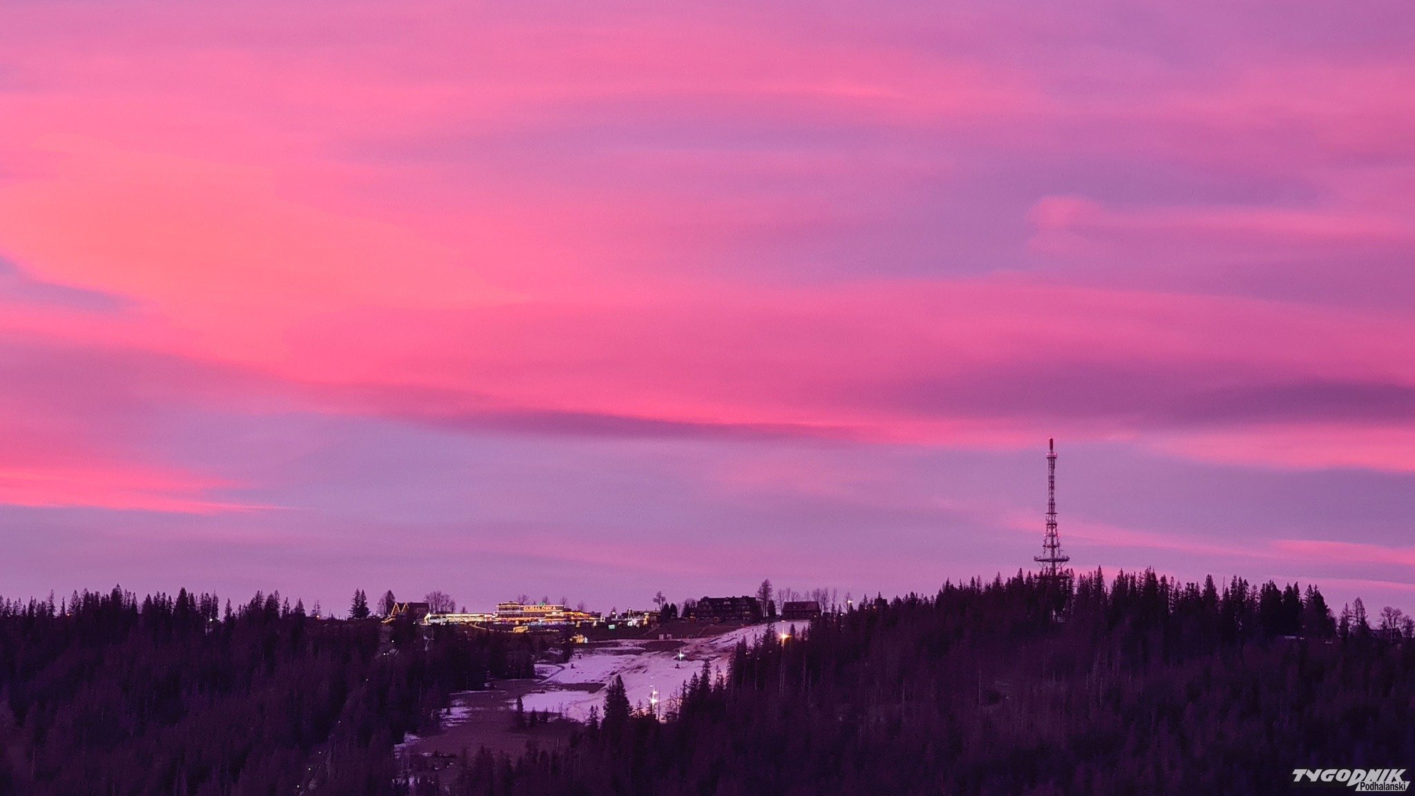 Za nami piękny, różnobarwny zachód słońca nad Podhalem i Tatrami.