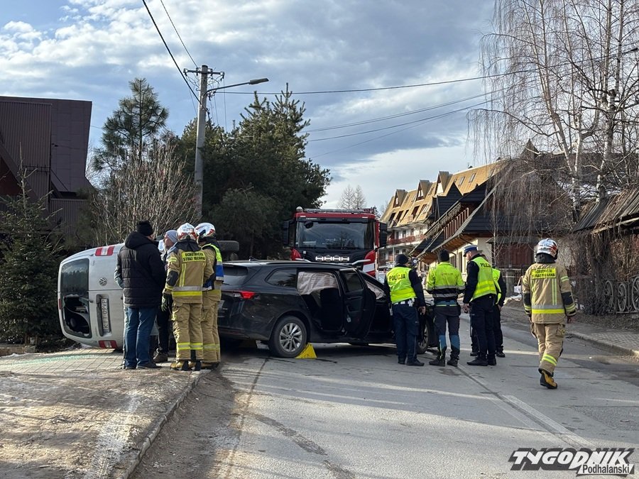 Na ulicy Nędzy Kubińca w Kościelisku, poniżej Centrum Tradycji i Turystyki doszło do groźnie wyglądającego zdarzenia drogowego z udziałem dwóch pojazdów.