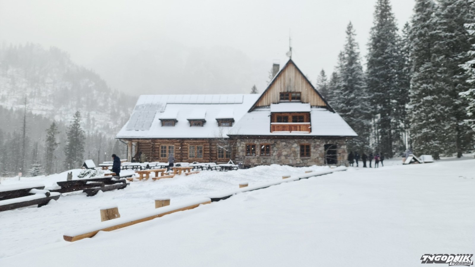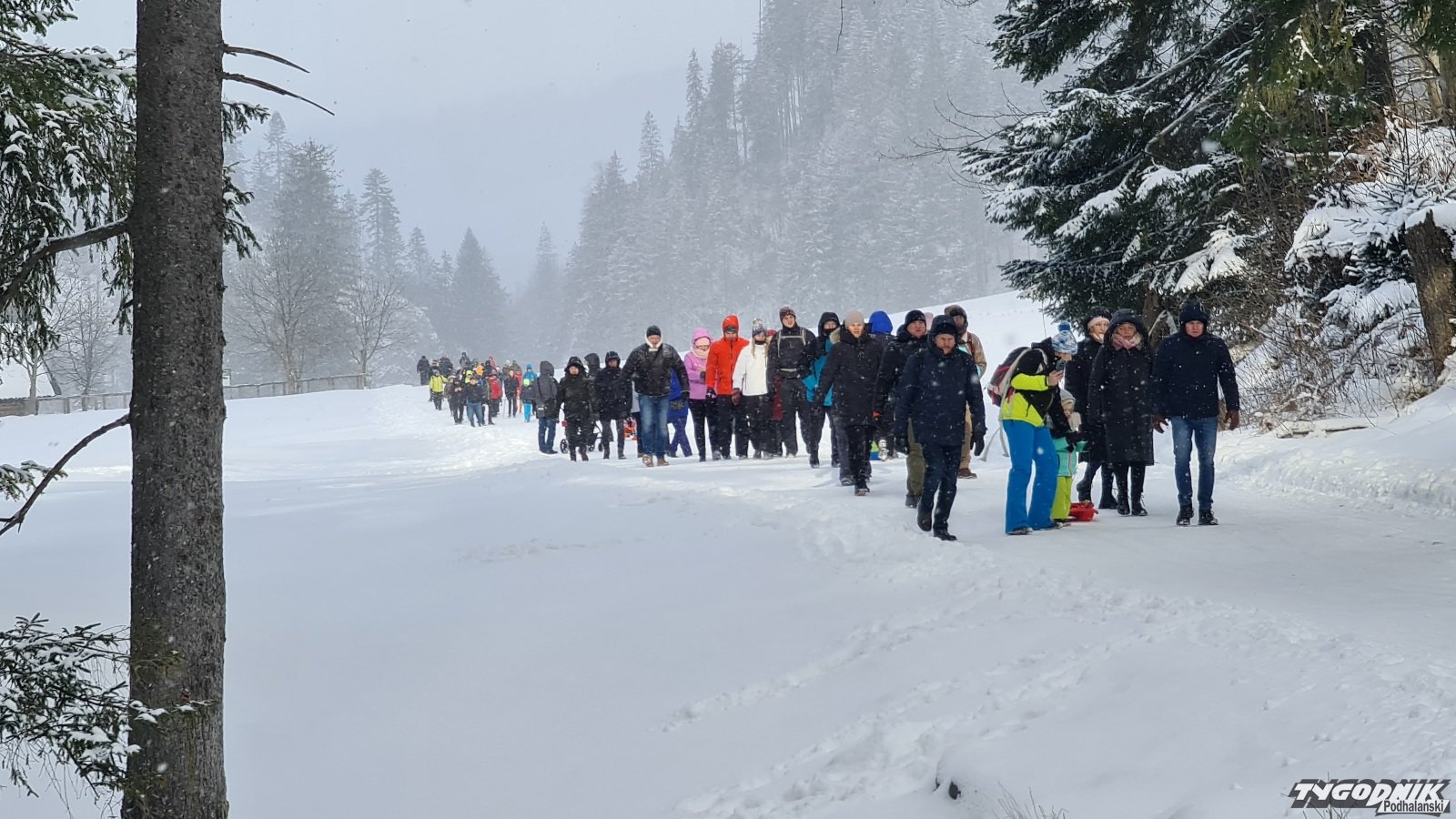 Jeszcze po godz. 8 na szlaku nie było wielu osób. Temperatura wynosi ok. - 6 st. C., chwilami pada śnieg, wieje wiatr. Gdy po godz. 9 dotarliśmy do schroniska na Hali Ornak było jeszcze w miarę pusto. Gdy wracaliśmy mijaliśmy już tłumy turystów. Pamiętajmy, aby nie wychodzić wyżej w Tatry. Szlaki są zasypane. Obowiązuje drugi stopień zagrożenia lawinowego.