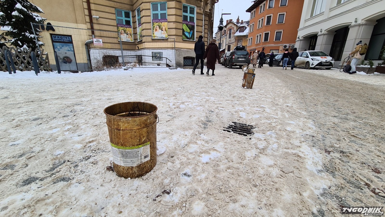 O wiadrach ustawianych na chodniku pisaliśmy kilka tygodni temu. Później wiadra zniknęły. Teraz pojawiły się ponownie. Dodajmy, że to jedno z centralnych miejsc w Zakopanem. Tędy turyści z Krupówek przechodzą na Plac Niepodległości i ul. Orkana. Wczoraj niektórzy turyści do wiader "antypostojowych" wrzucali śmieci.