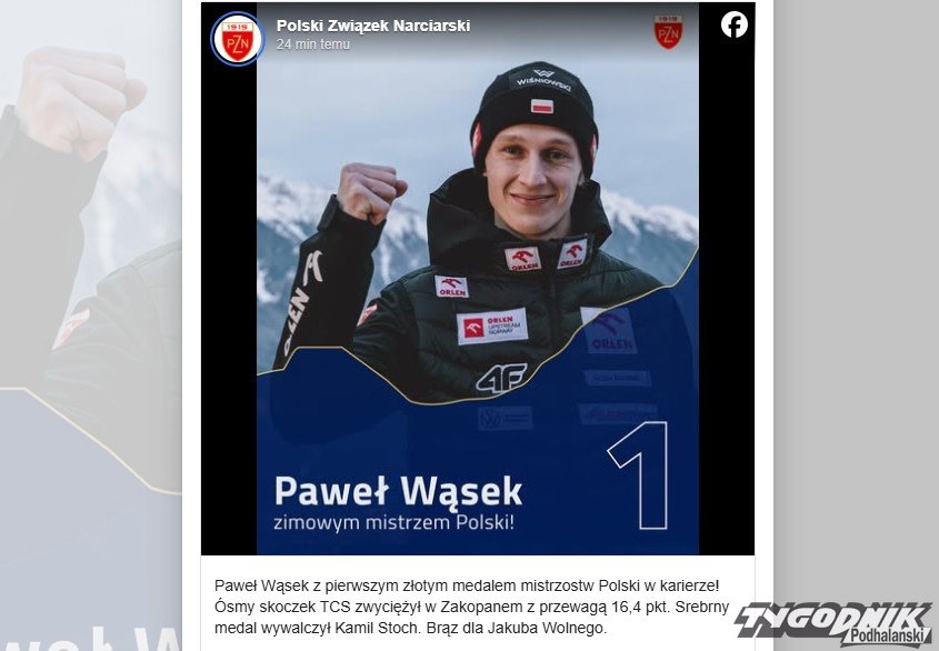 Paweł Wąsek został indywidualnym mistrzem Polski w zawodach, które odbyły się na Wielkiej Krokwi w Zakopanem. Srebrny medal wywalczył Kamil Stoch.