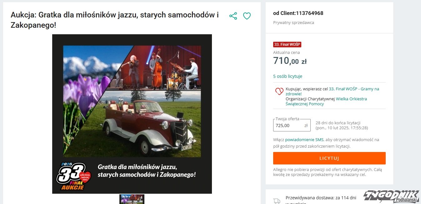 Zakopane gra z Wielką Orkiestrą Świątecznej Pomocy, można wylicytować przejażdżkę mercedesem rodem z lat 30, za kierownicą usiądzie burmistrz Filipowicz.