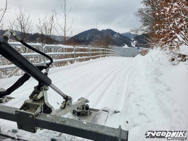 Na ścieżkach rowerowych nad Jeziorem Czorsztyńskim powstają trasy narciarskie.