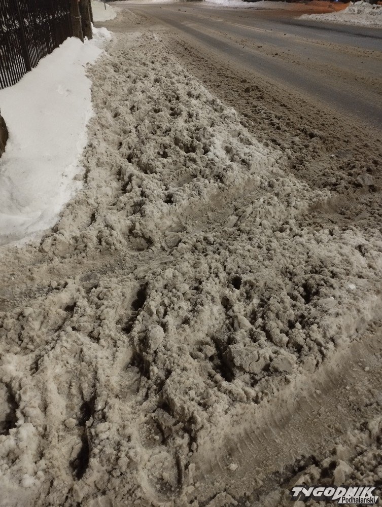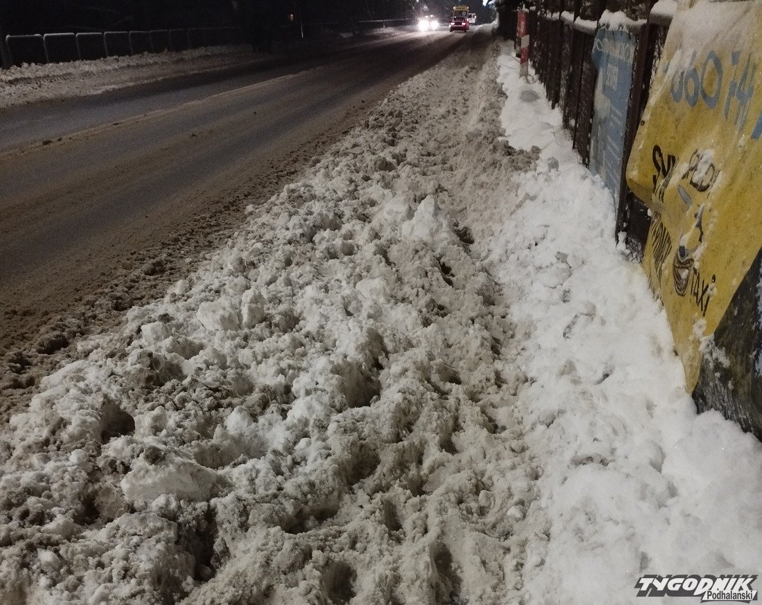 Ul. Kasprowicza to trasa wjazdowa do centrum Zakopanego. Przy ulicy tej znajdują się dość wąskie chodniki. Od lat jest problem z ich odśnieżaniem. Przypomnijmy, że obowiązek odśnieżania chodników spoczywa na właścicielach lub dzierżawcach przyległych posesji, chyba że teren obok należy do gminy. Wiceburmistrz Bartłomiej Bryjak mówił w czasie niedawnej sesji, że miasto powoli przejmuje odśnieżanie i teraz usuwa śnieg już z ok. 50 % chodników.