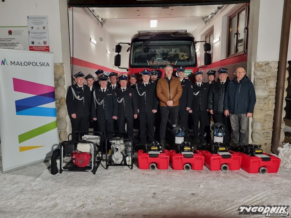 We wtorek w remizie OSP Bańska Niżna odbyło się uroczyste przekazanie strażakom pomp zakupionych w ramach pomocy finansowej Województwa Małopolskiego pn. "Pomoc finansowa dla gmin z przeznaczeniem dla jednostek OSP - zapobieganie skutkom powodzi".