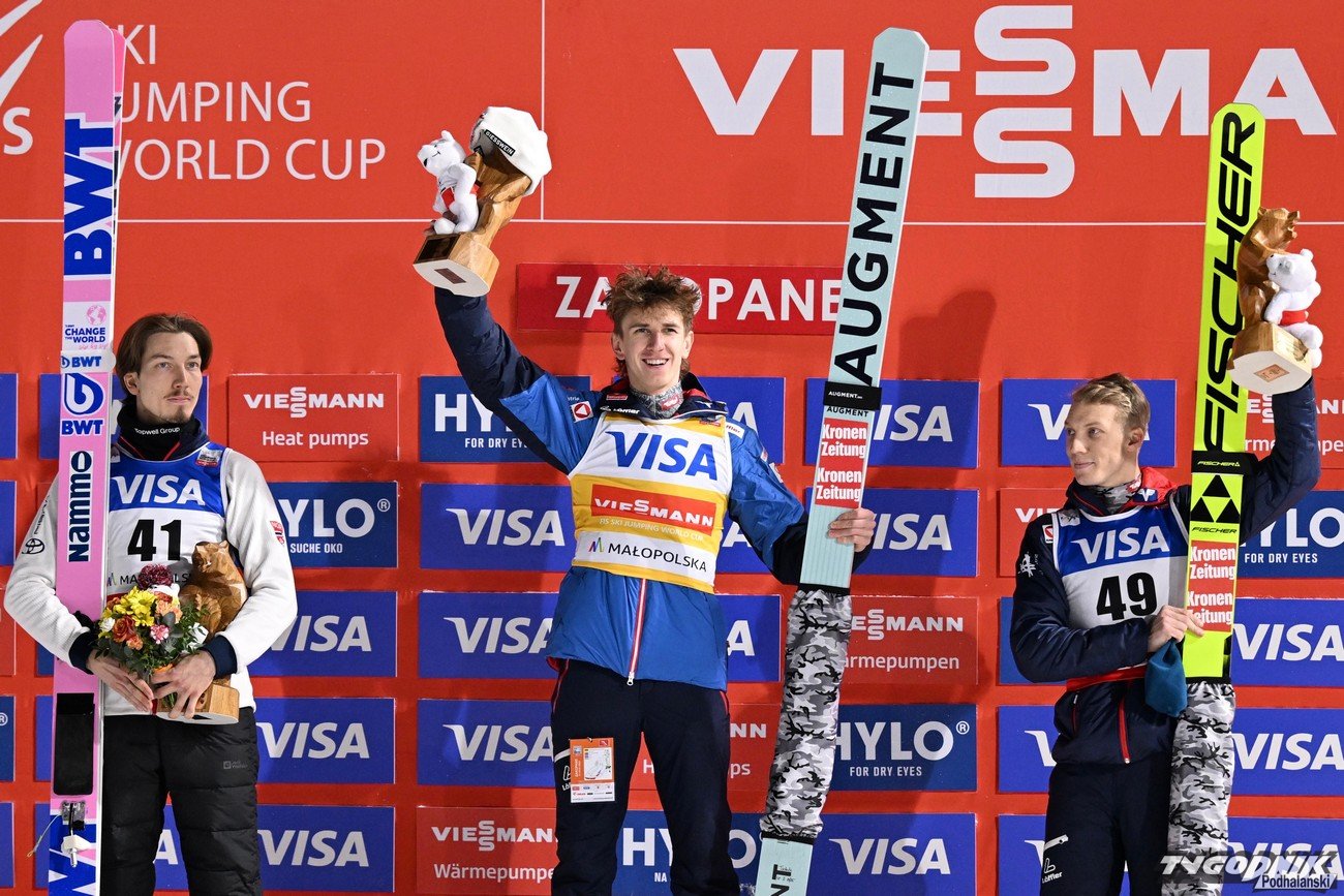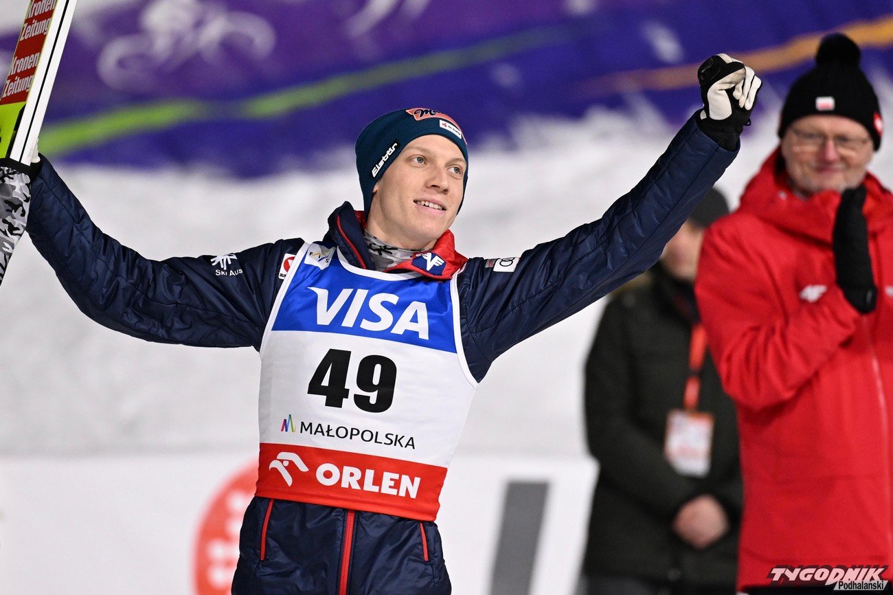 Po zajęciu piątego miejsca w niedzielnym konkursie Paweł Wąsek stwierdził, że trochę ciążyła mu rola lidera naszej kadry, gdy jechał do Zakopanego. Na miejscu jednak po dobrych skokach znakomicie sobie z tą rolą poradził. Na trybunach wśród kilkunastu tysięcy doskonale dopingujących kibiców był też prezydent Andrzej Duda. Zobaczcie, jak niedzielny konkurs wyglądał w obiektywie Bartłomieja Jureckiego.