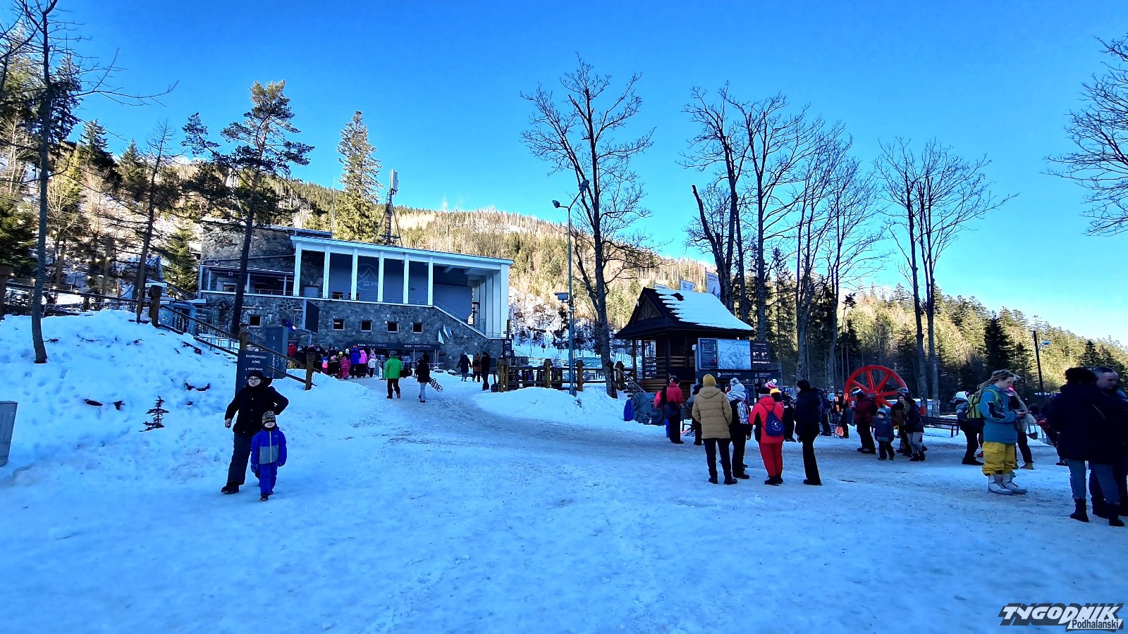 Wielu turystów, którzy już rano przyjechali do Kuźnic miało wykupione wcześniej bilety. Wtedy do wagoników wchodzimy bez czekania w kolejce. Z pewnością ruch w Kuźnicach będzie z każdą godziną większy, dziś pogoda znakomita. Od soboty kursuje wyciąg w Kotle Gąsienicowym i można tam jeździć na nartach.