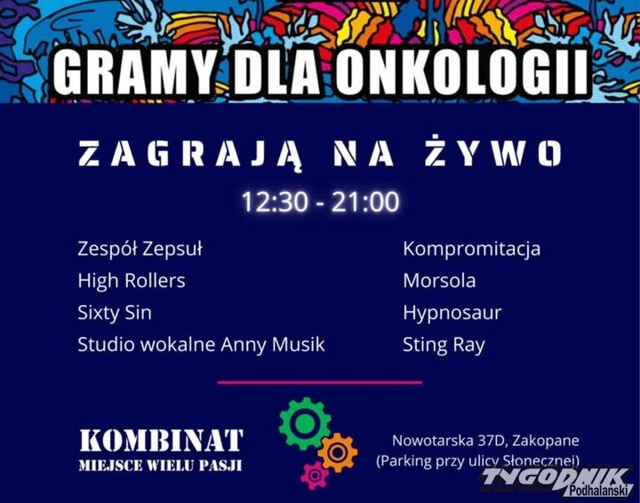 Wolontariuszy będzie można spotkać w różnych miejscach pod Giewontem. Do akcji włączyły się studio kosmetyczne i fryzjerskie. Na scenie "Kombinat - miejsce wielu pasji" wystąpią różne zespoły.