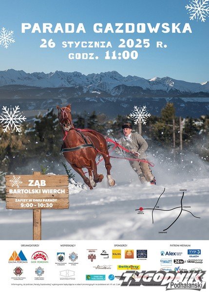 Już w tę niedzielę 26 stycznia o godzinie 11 rozpocznie się widowiskowa Parada Gazdowska w Gminie Poronin. Startujący i kibice spotkają się na Bartolskim Wierchu w Zębie.