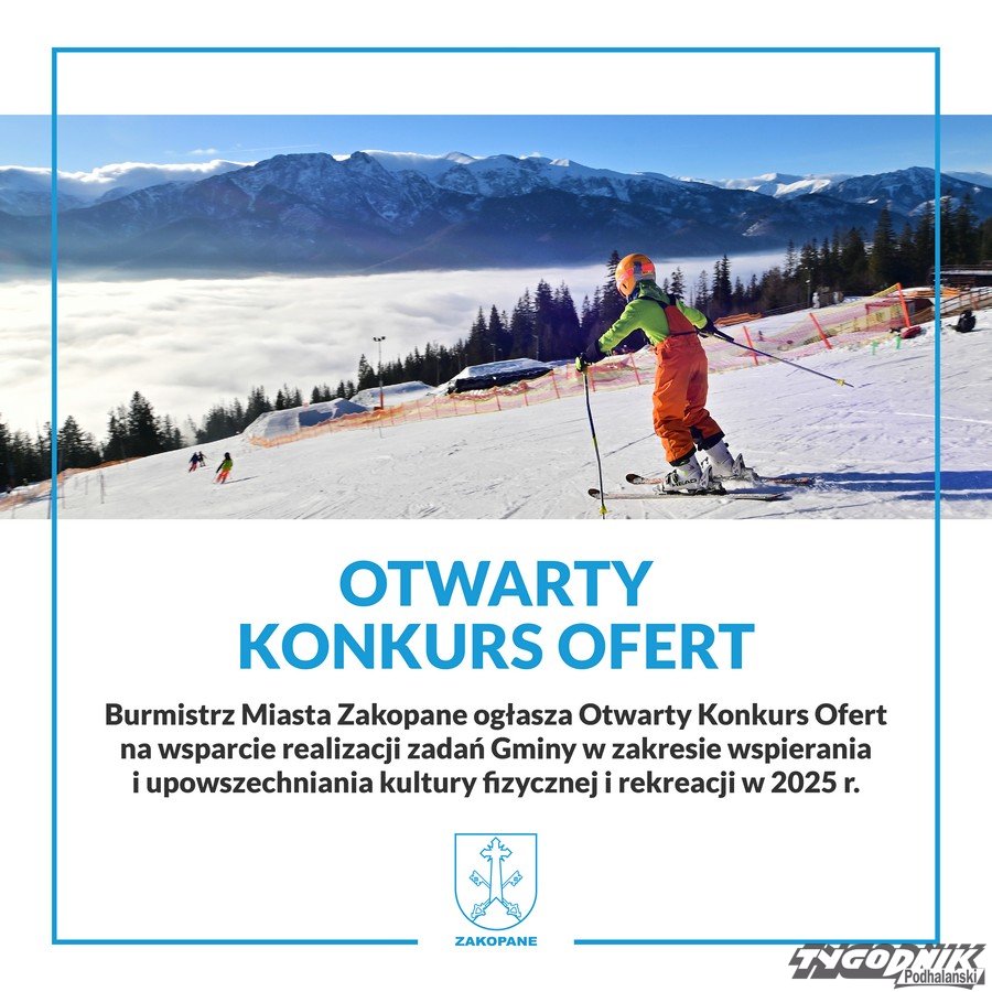 Burmistrz Zakopanego ogłasza otwarty konkurs ofert na wsparcie realizacji zadań Gminy w zakresie wspierania i upowszechniania kultury fizycznej i rekreacji w roku 2025.