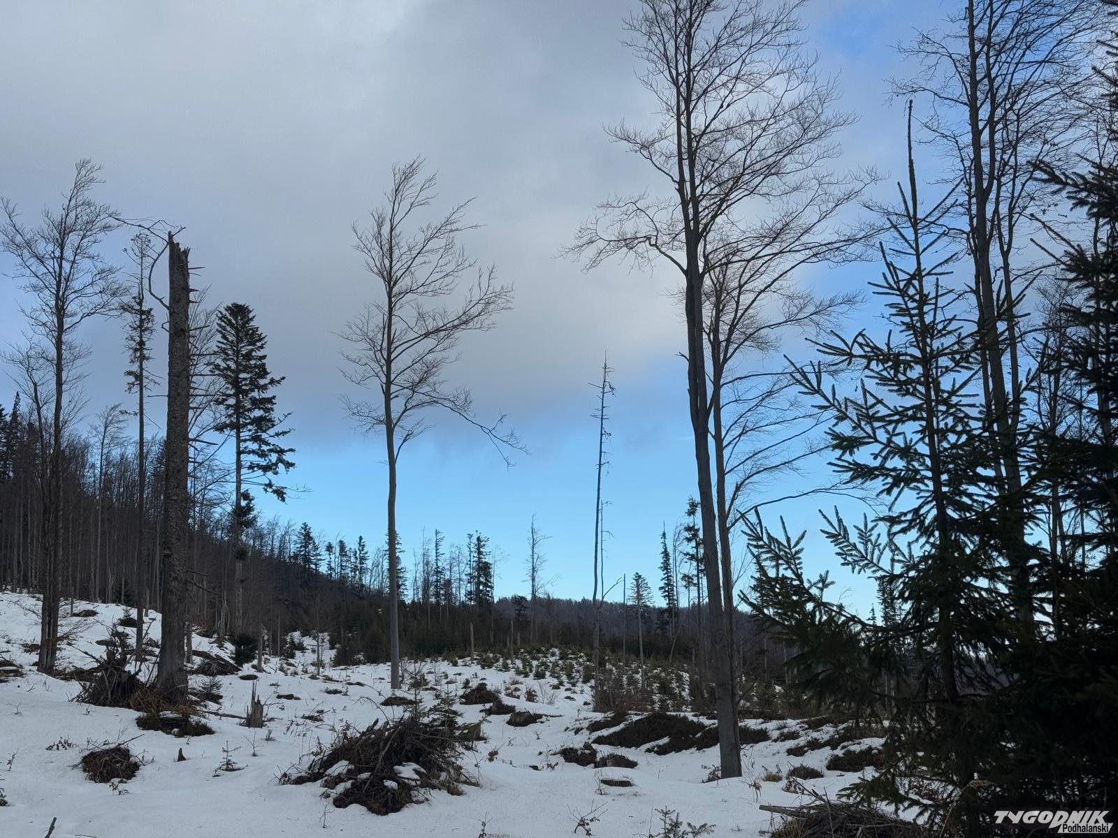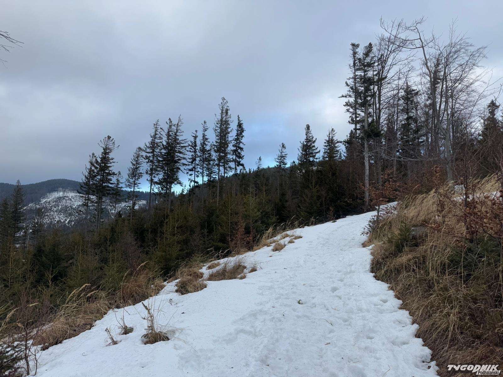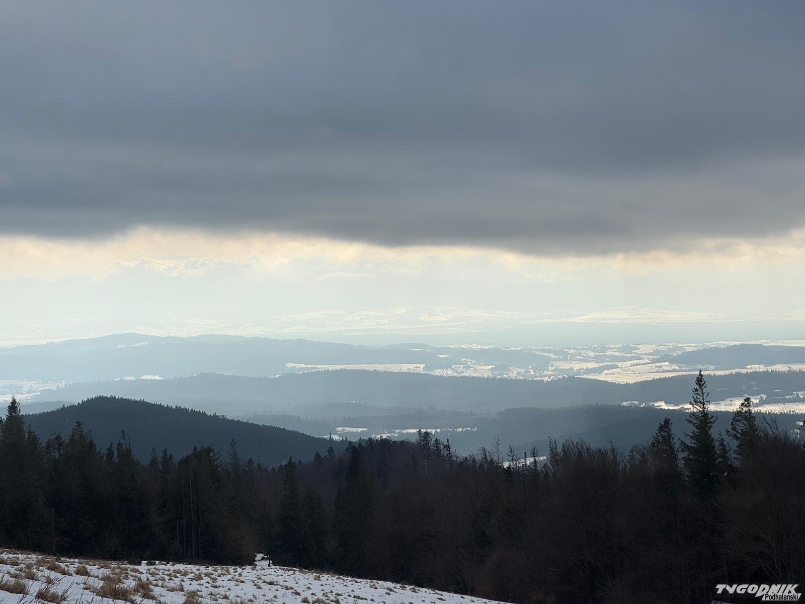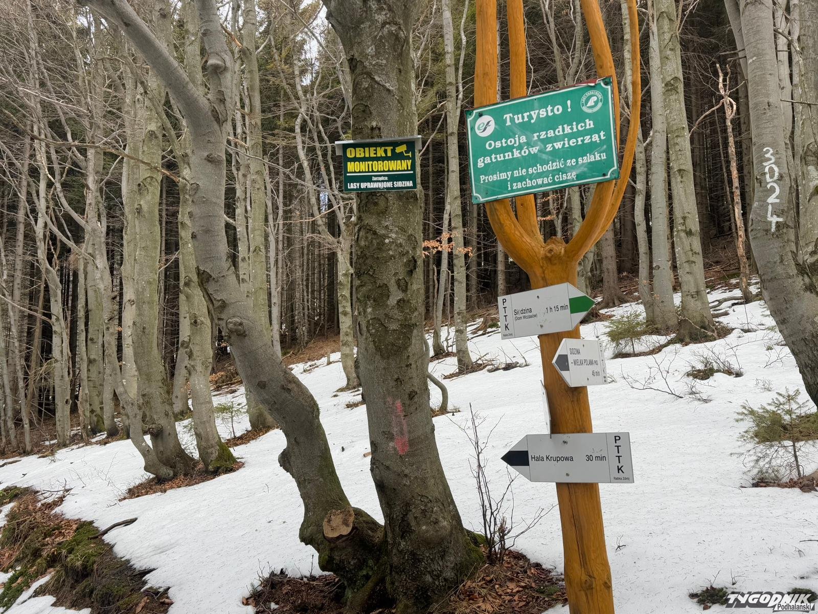 W Beskidach zapanowała niemal prawdziwa wiosna. Śniegu trzeba szukać w wyższych położeniach, błoto nie jest specjalnie dokuczliwe. Tych co wyruszyli dziś na szlaki aura obdarowała pięknymi widokami. Było też całkiem ciepło z wyjątkiem wyższych partii, Na grzbietach wiał porywisty wiatr. Wichura zmuszał do szukania ochrony w kapturze ale jednak nie utrudniała marszu.