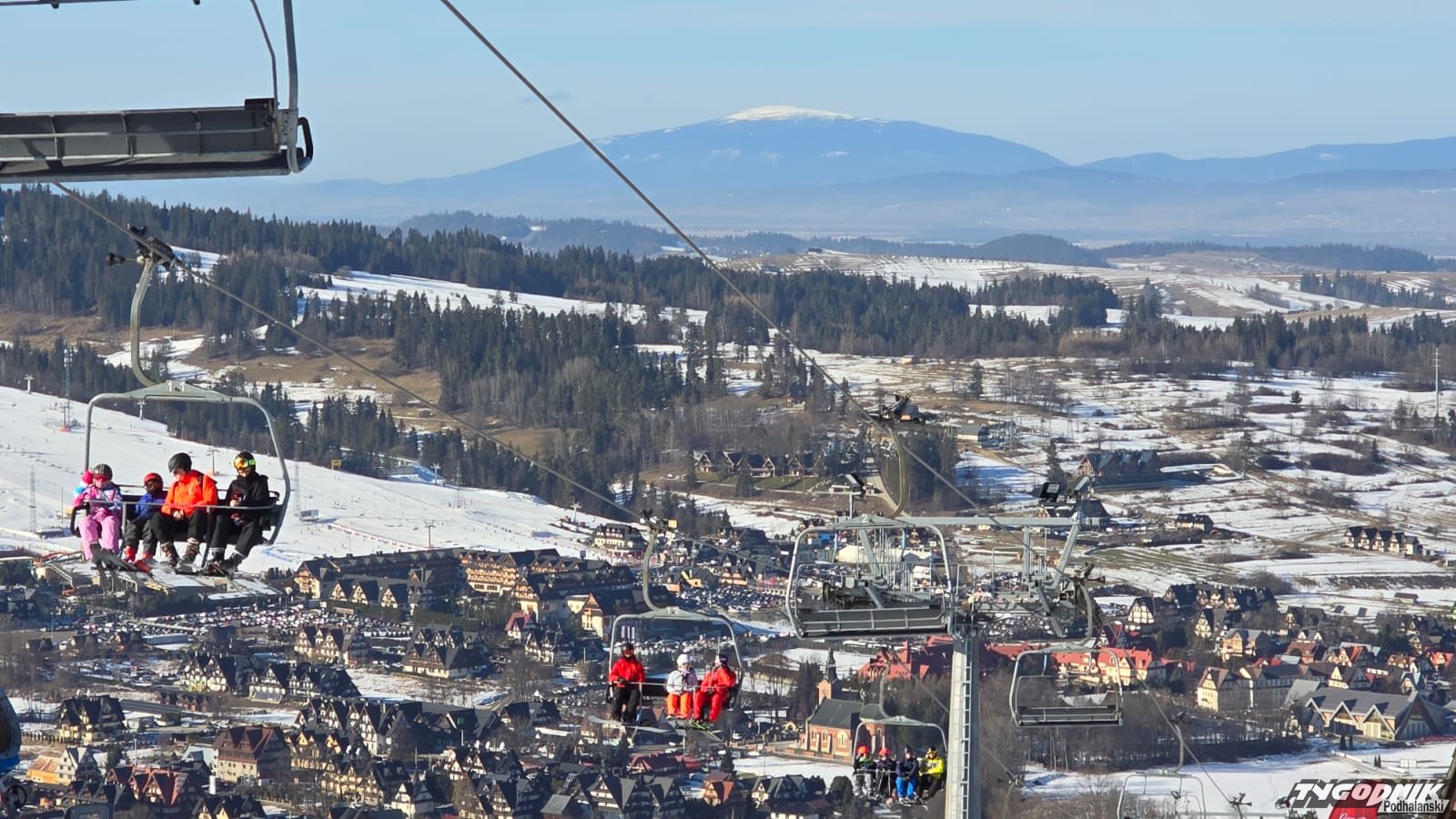 Z górnej stacji narciarskiej Grapa Ski doskonale widać Babią Górę i Tatry. Dziś pogoda bajkowa. Warunki narciarskie znakomite. Wszystkie stacje narciarskie oblegane. Niedaleko, w Jurgowie widok na Wysokie Tatry jak na dłoni. To będą udane ferie.