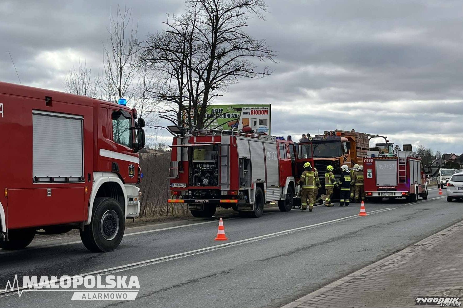 W Podwilku na krajowej siódemce pożar wybuchł w komorze silnika ciężarówki.