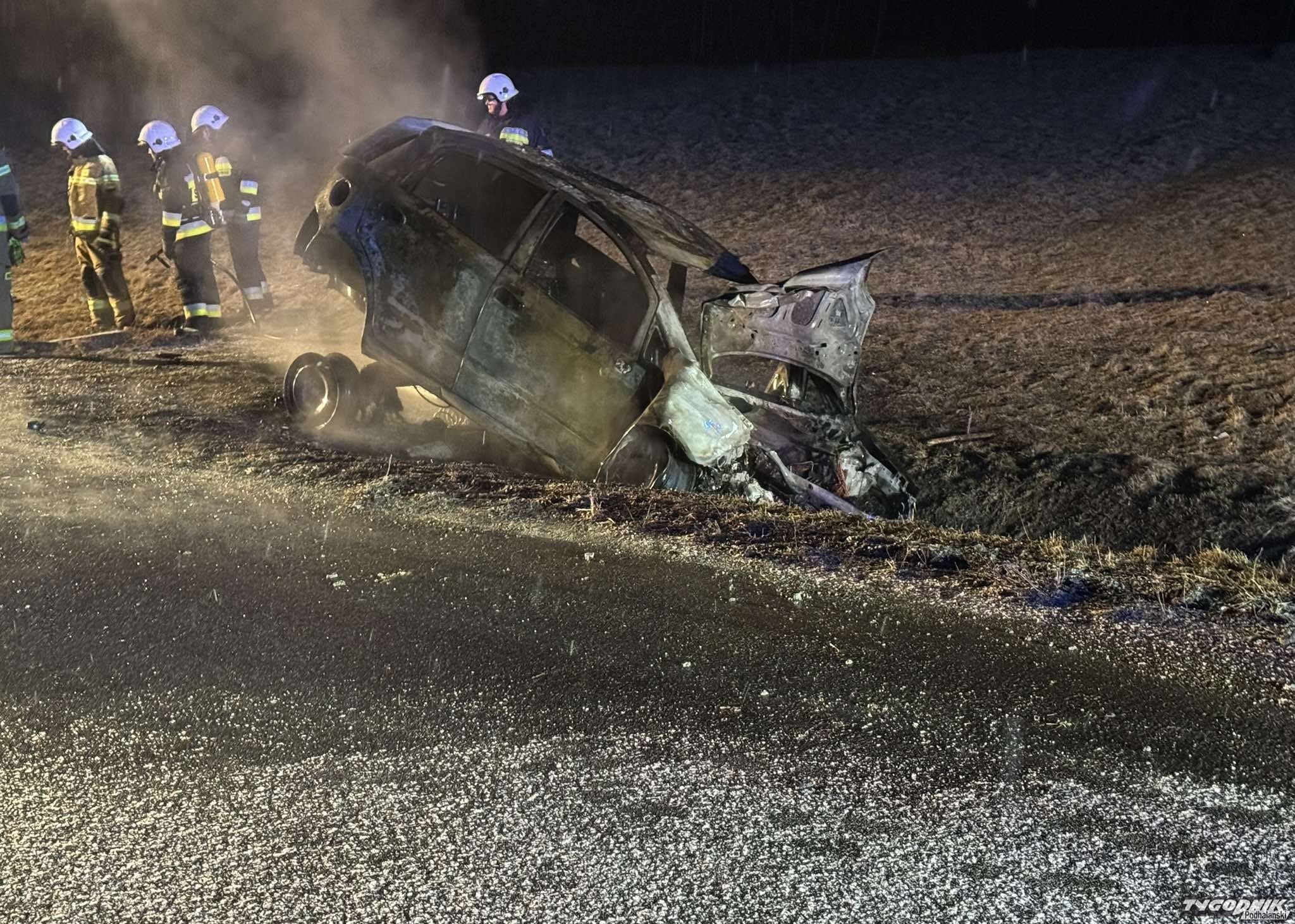 Samochód dachował i stanął w płomieniach