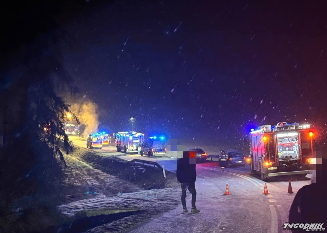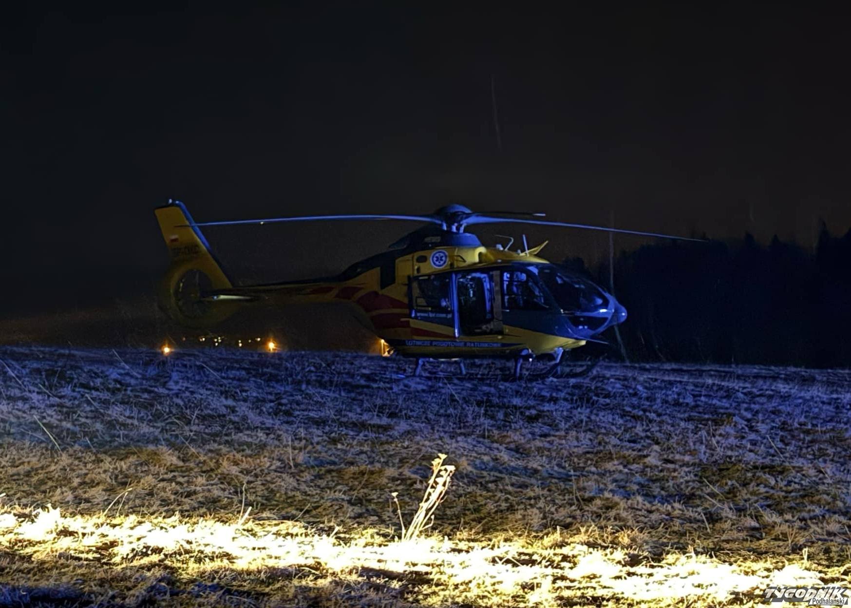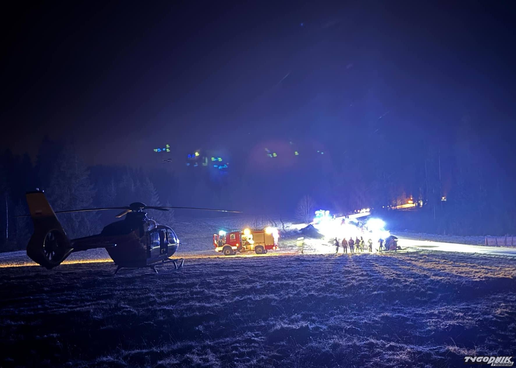 Bardzo groźny wypadek w Podszklu - po poszkodowanego przyleciał śmigłowiec ratowniczy.
