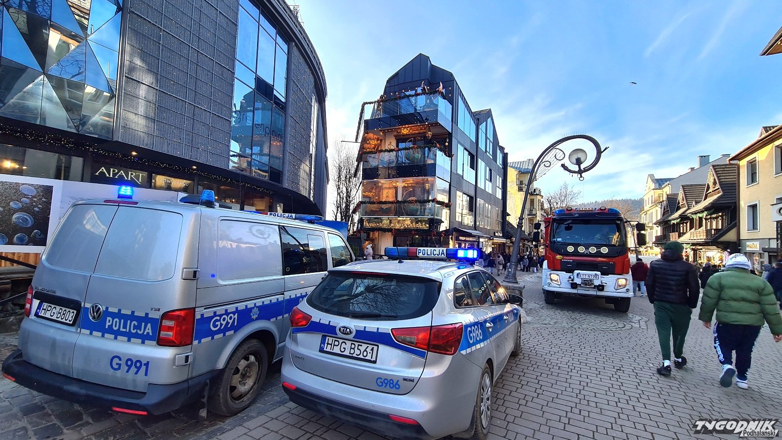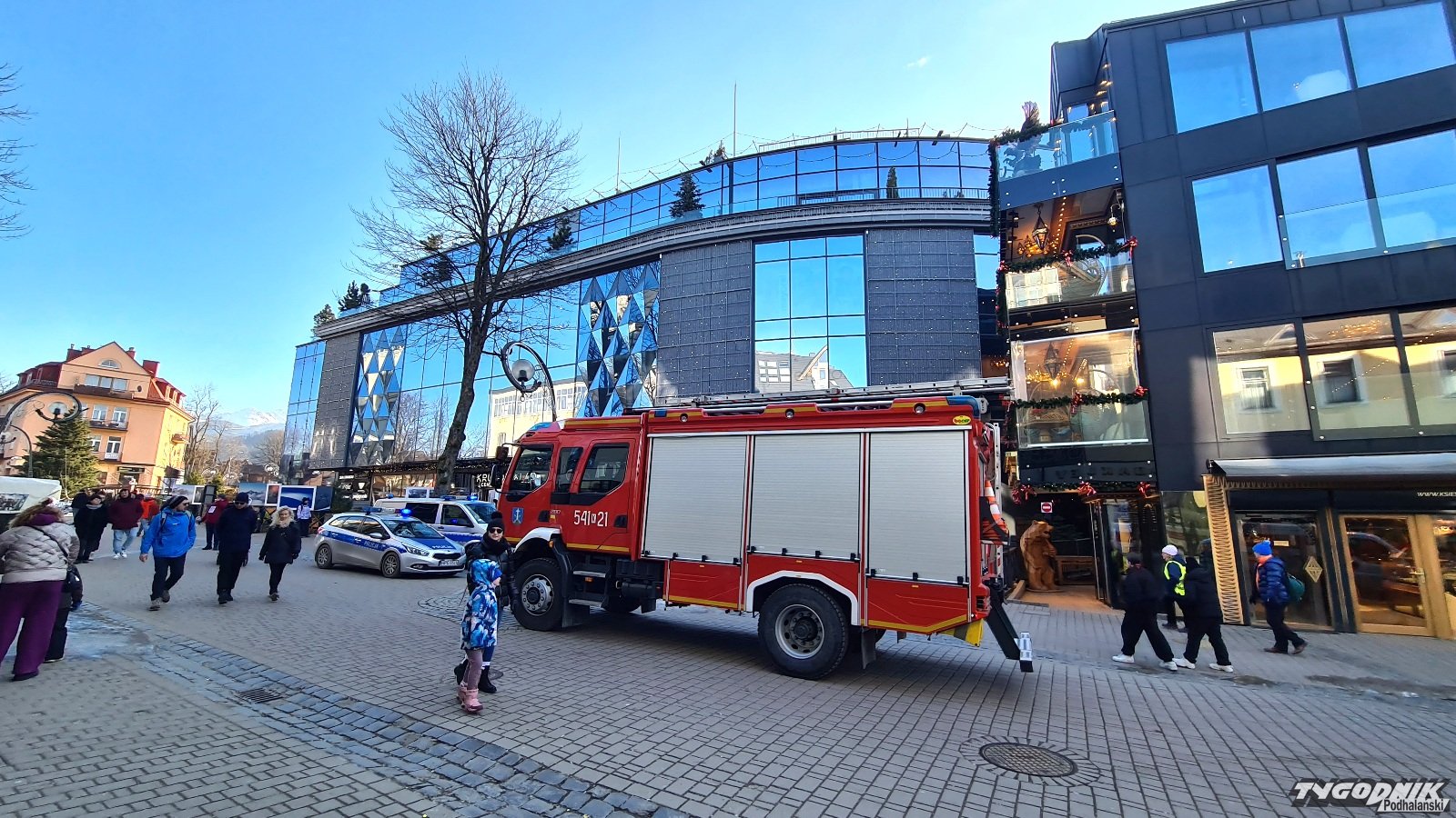 Przed godz. 14 w poniedziałek na Krupówki przyjechały dwa policyjne radiowozy i wóz strażacki z zakopiańskiej komendy. Według zgłoszenia, w czasie prac remontowych miało dojść do naruszenia konstrukcji budynku. Policjanci ustalają czy do takiego naruszenia doszło i co było jego przyczyną.
