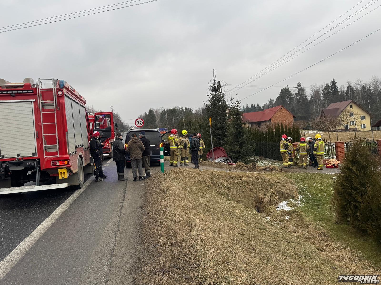 Wypadek zdarzył się na krajowej siódemce, przy wyjeździe ze Skawy w stronę Spytkowic. Na miejscu pracują strażacy z Rabki i OSP Skawa. Druhowie opatrzyli poszkodowanych. Na miejscu jest też patrol policji. Ruch jest utrudniony, odbywa się wahadłowo.