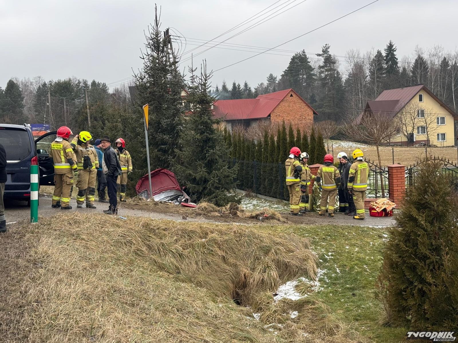 Auto osobowe wypadło z drogi i uderzyło w przepust.